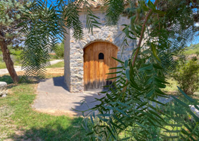 Localitzada en la partida de Santa Bàrbara s’accedix pel camí asfaltat que part des de l’ermita de Santa Bàrbara en la CV245. Es tracta d’una ermita de planta hexagonal amb murs de maçoneria i teulada curvilínia de teula àrab a sis aigües. A l’interior de n’hi ha una fornícula per a col·locar la imatge del sant. Tant interior com exterior estaven arrebossats i encalats, acabat que va ser retirat en l’última intervenció de principis del s. XXI. L’ermita és del s. XVIII, posterior a l’Ermita de Santa Bàrbara, i el seu origen està relacionat amb el descobriment del Pou de Sant Agustí que deu el seu nom al dia de la seua troballa, 28 d’agost de 1618, festivitat de Sant Agustí. Segurament l’ermita s’edificaria dècades després prop de la localització del pou, les aigües canalitzades del qual per l’aqüeducte de la Mena, fins a la Font de Sant Agustí, van proveir a Alcublas durant quasi 400 anys.en