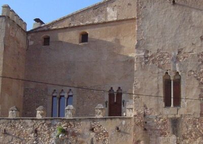 Es troba al nucli urbà de la població, davant del pont que creua el riu Palància i prop de l’església parroquial. Es tracta d’una sòlida casa senyorial fortificada, encara que probablement s’alçara sobre construccions més antigues, ja que s’hi han trobat evidents vestigis romans. Amb tota probabilitat va ser iniciada sota el senyoriu de Jofré de Blanes, a finals del segle XIV, i en ella s’allotjà el monarca Martí l’Humà l’any 1401. Tot i que ha patit nombroses reformes posteriors, és, amb tot, el palau gòtic millor conservat de la comarca, i en ell poden observar-se clarament la combinació d’elements palatins amb elements defensius, característica de les cases senyorials de l’època. Des de l’any 1897 pertany a la família Baixauli.