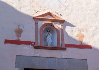 L’edifici és neoclàssic, destacant la cúpula i les quatre petxines decorades amb motius bíblics: Adam i Eva expulsats del Paradís, l’Arca de Noè, el somni de Jacob i Moisès amb la bardissa ardent. Destaquen també en la façana el vitrall amb la imatge de la Immaculada Concepció, obra de l’artista Joaquim Michavila, i el campanar.