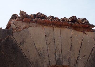 Aquest hort posseeix un gran mur perimetral realitzat amb la tècnica ancestral del “tapial” amb fang i calç. A les cantonades presenta xicotetes torres que donen un aspecte quasi militar, però el que més crida l’atenció, i que sense cap dubte té rellevància històrica i cultural, és la porta. Es tracta d’un element que no es troba en la seua ubicació original. És una portalada de grans dovelles i carreus de pedra que s’ha adossat artificialment a la paret. S’ha protegit amb una cornisa de teules.