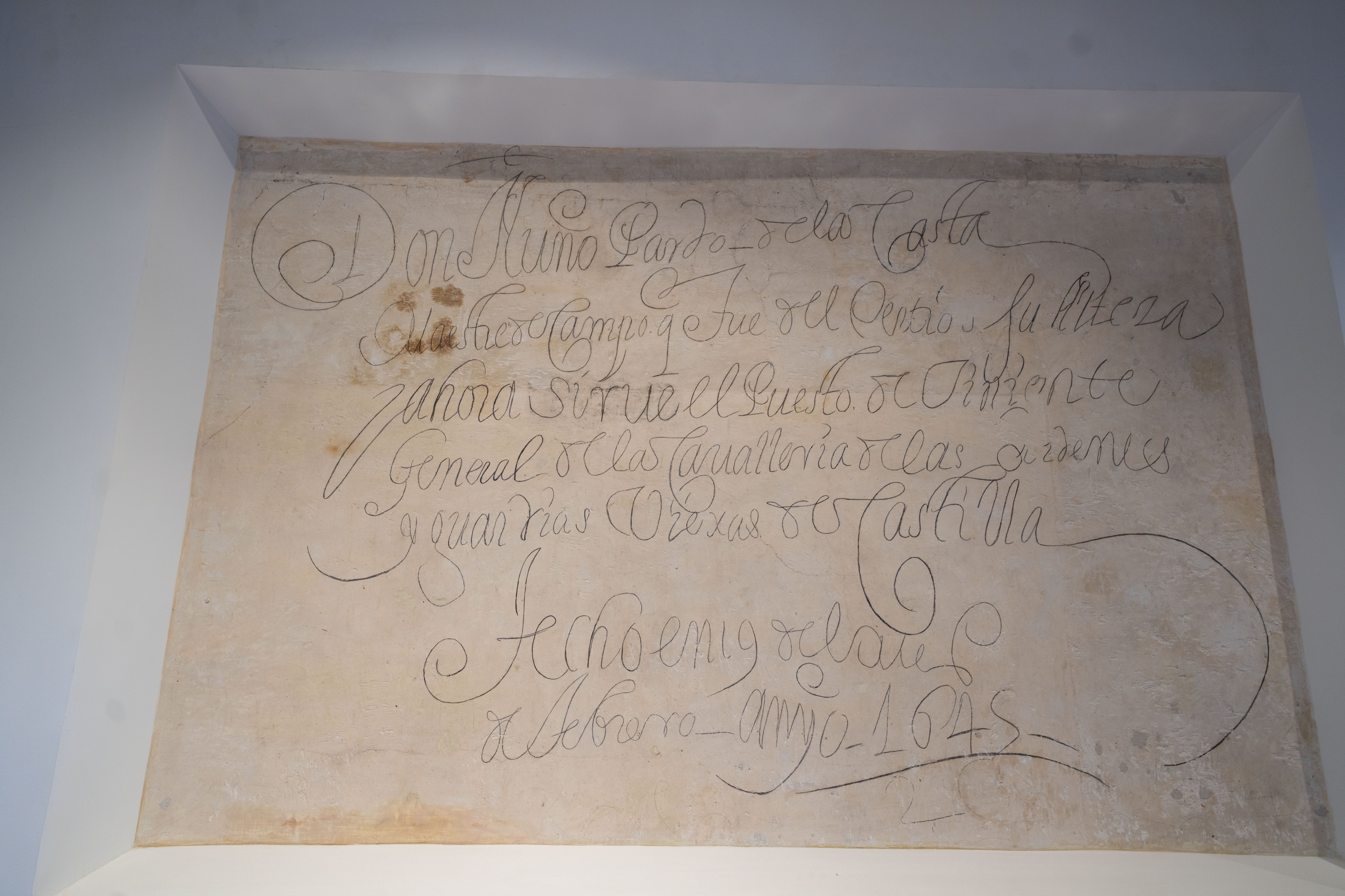 Grafit que enumera els honors militars de Do Nuño Pardo de la Casta, fill del senyor d’Alaquàs: