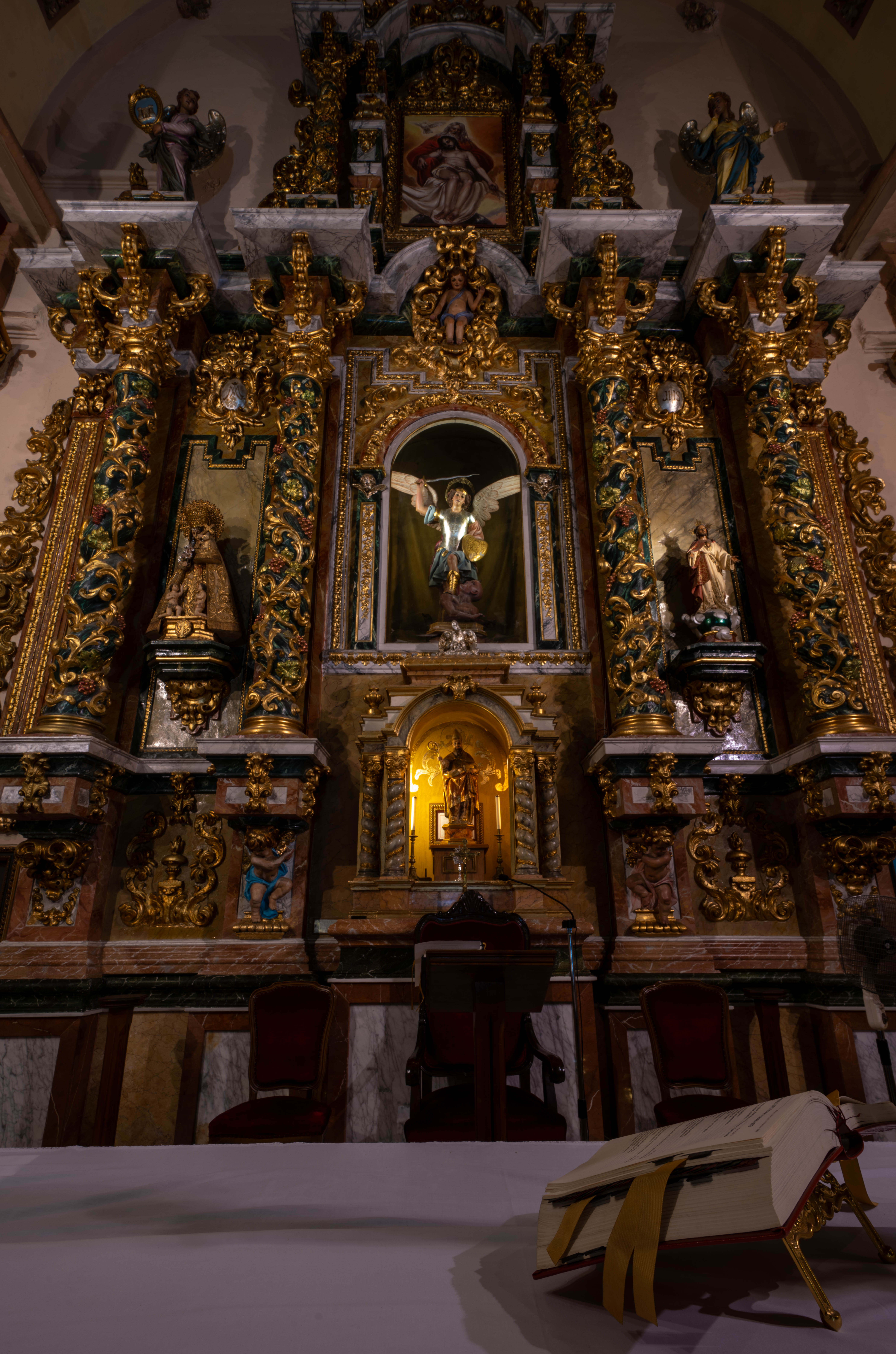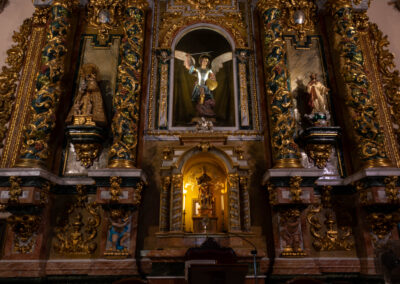 L’església parroquial de Sant Miquel Arcàngel està situada en el punt més alt del poble, al peu del turó del castell. L’edifici actual va ser construit sobre un anterior en 1736, moment en què s’hi va afegir el campanar. L’església anterior va ser el resultat de la transformació, en 1535, de la mesquita de Jalance. A l’inici de la Guerra Civil, el 1936, va ser incendiada i saquejada, i entre les pèrdues hi havia els llibres de l’arxiu eclesiàstic que dataven de 1623. L’edifici és de estil barroc, amb una sola nau, capelles entre els contraforts i un sostre de volta de canó. Al costat de l’Evangeli s’alça el campanar, de planta quadrada i un sol cos estructural. Sobre el dintell de la porta hi ha un nínxol que alberga la imatge del sant titular. L’aspecte actual de la plaça es deu a les obres de remodelació realitzades entre el 2002 i el 2004. Aquestes van incloure l’excavació de la vessant per crear un nou carrer, la construcció d’una gran paret de pedra i l’edificació de noves escales que hi condueixen. Tota la plaça va ser pavimentada amb llambordes de granit i es va col·locar una gran creu de quatre metres d’altura.
