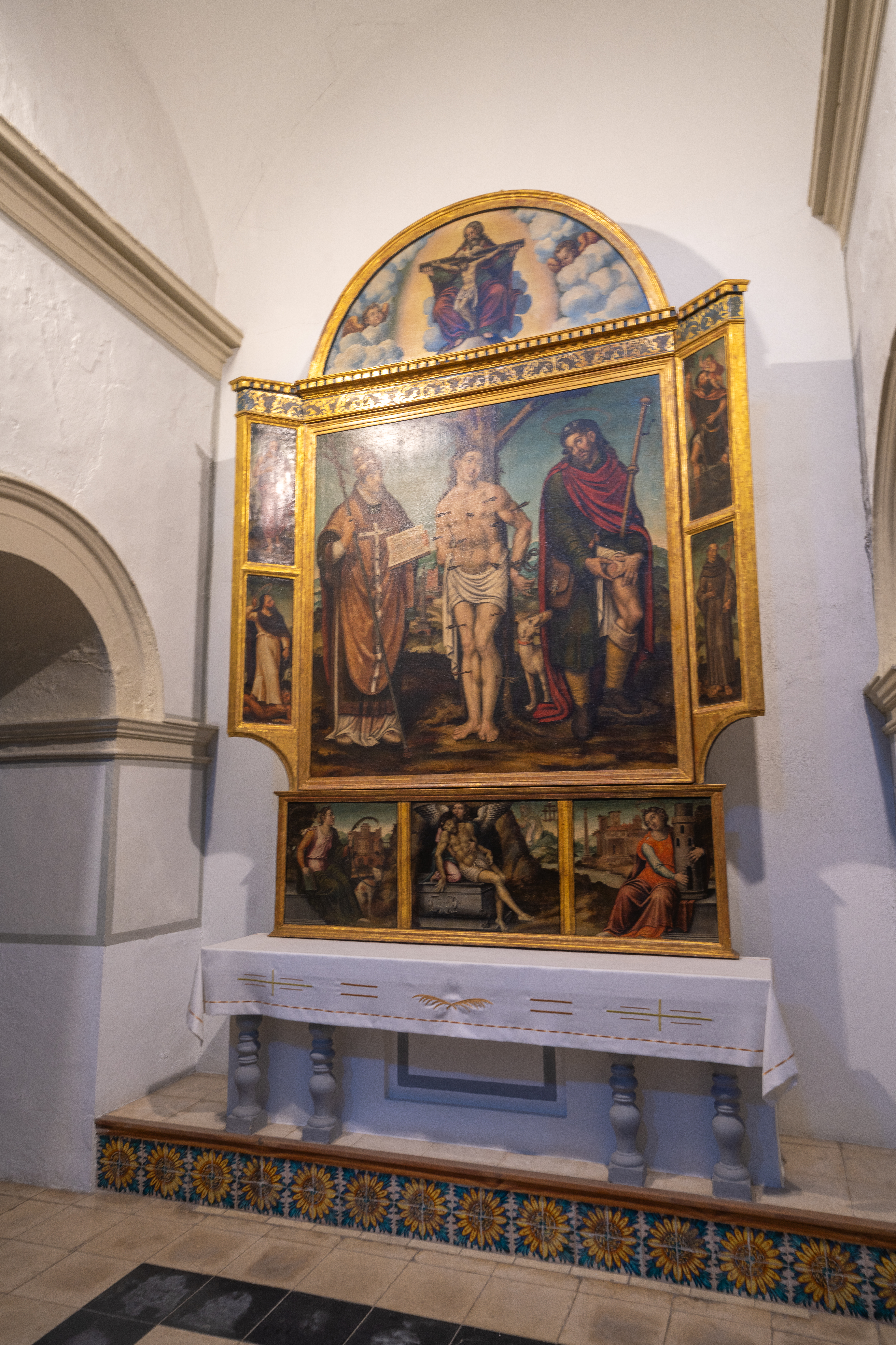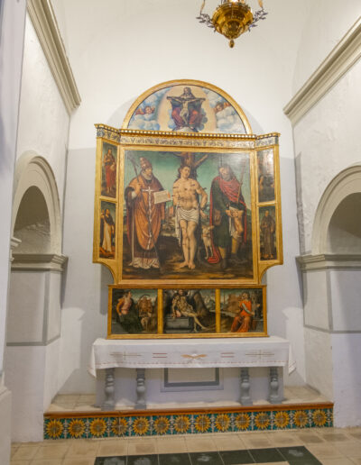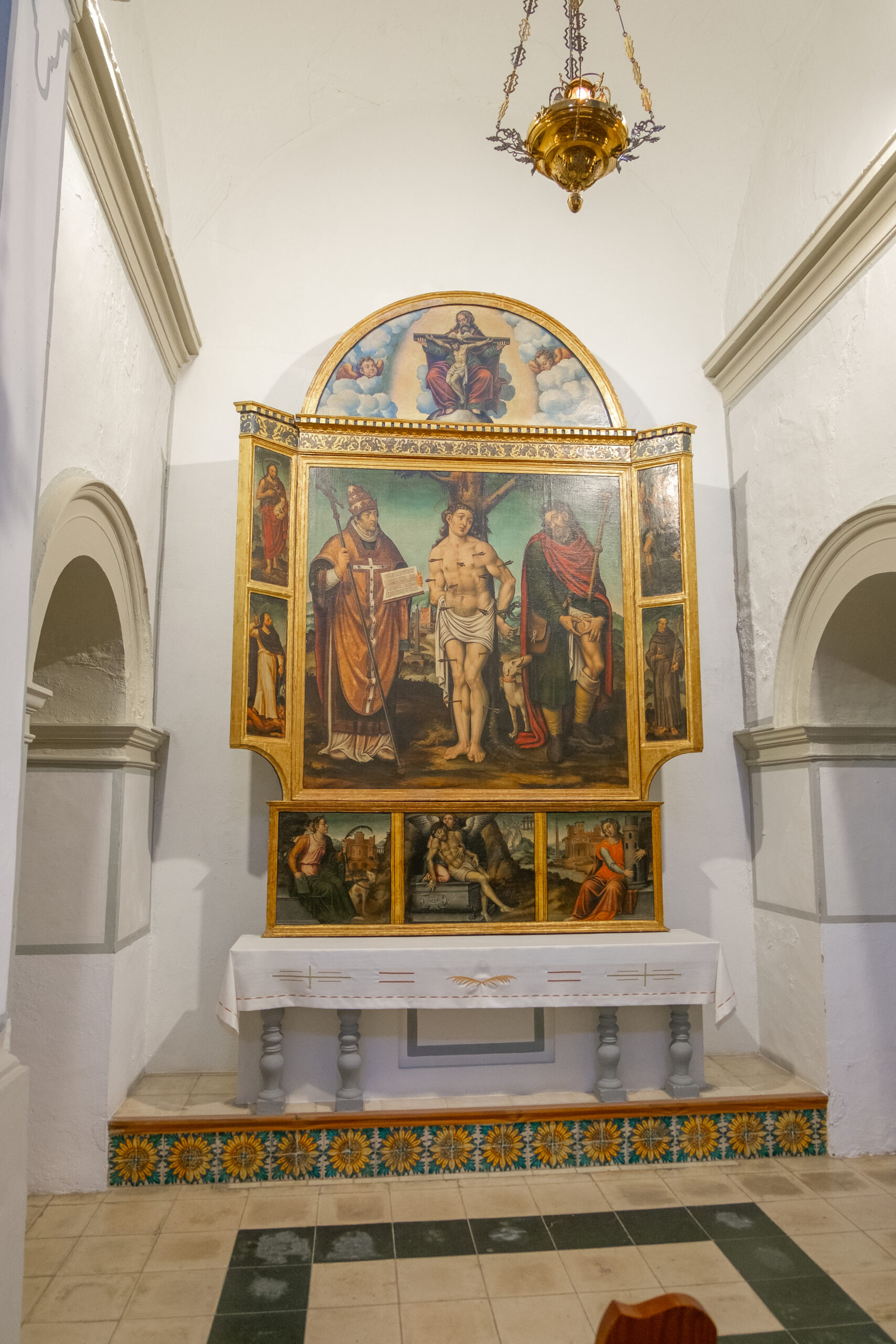 El retaule major actual és un rèplica del *orginal, de 1765 (posterior al terratrémol de 1748), que va ser destruït durant la Guerra Civil. En ell trobem una rèplica de l’antiga talla de la Mare de Déu que hi havia al castell, cedida pels frares a la parròquia després del terratrémol. L’orfebreria que acompanya a la Verge data dels segles XVIII i XIX. Este altar, amb la seua rica iconografia i detallat treball artesanal, reflectix la devoció religiosa de la comunitat i l’esplendor de l’art a la regió.