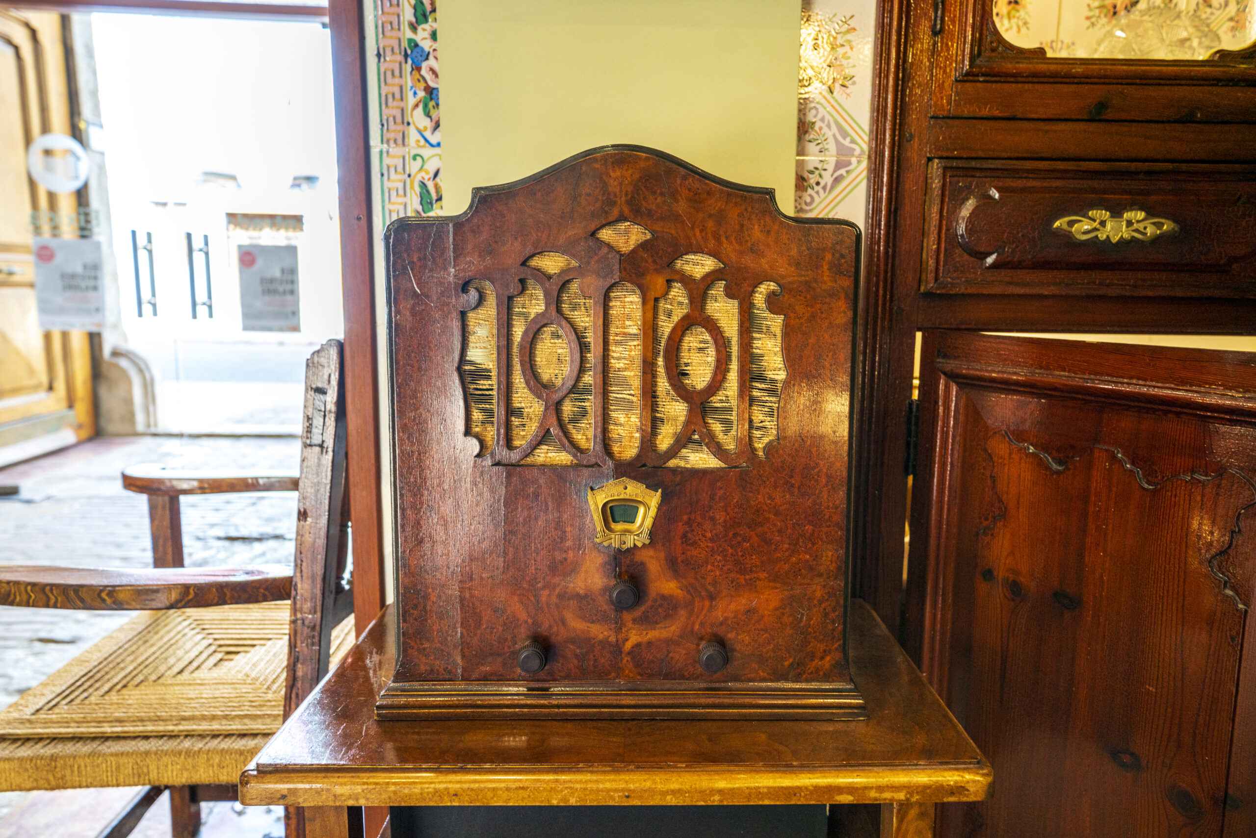 Aparell receptor de radi a vàlvules estil capella, en el seu interior conté una xapa metàl·lica amb dades sobre el fabricant i model. Aquests receptors van substituir als primers models a galena fins a l’aparició del transistor en els anys quaranta. En l’exposició apareix associada a una pantalla en la qual es poden seleccionar arxius de so de diferents emissores i programes al llarg del segle XX, classificats en tres categories: notícies, publicitat i música.