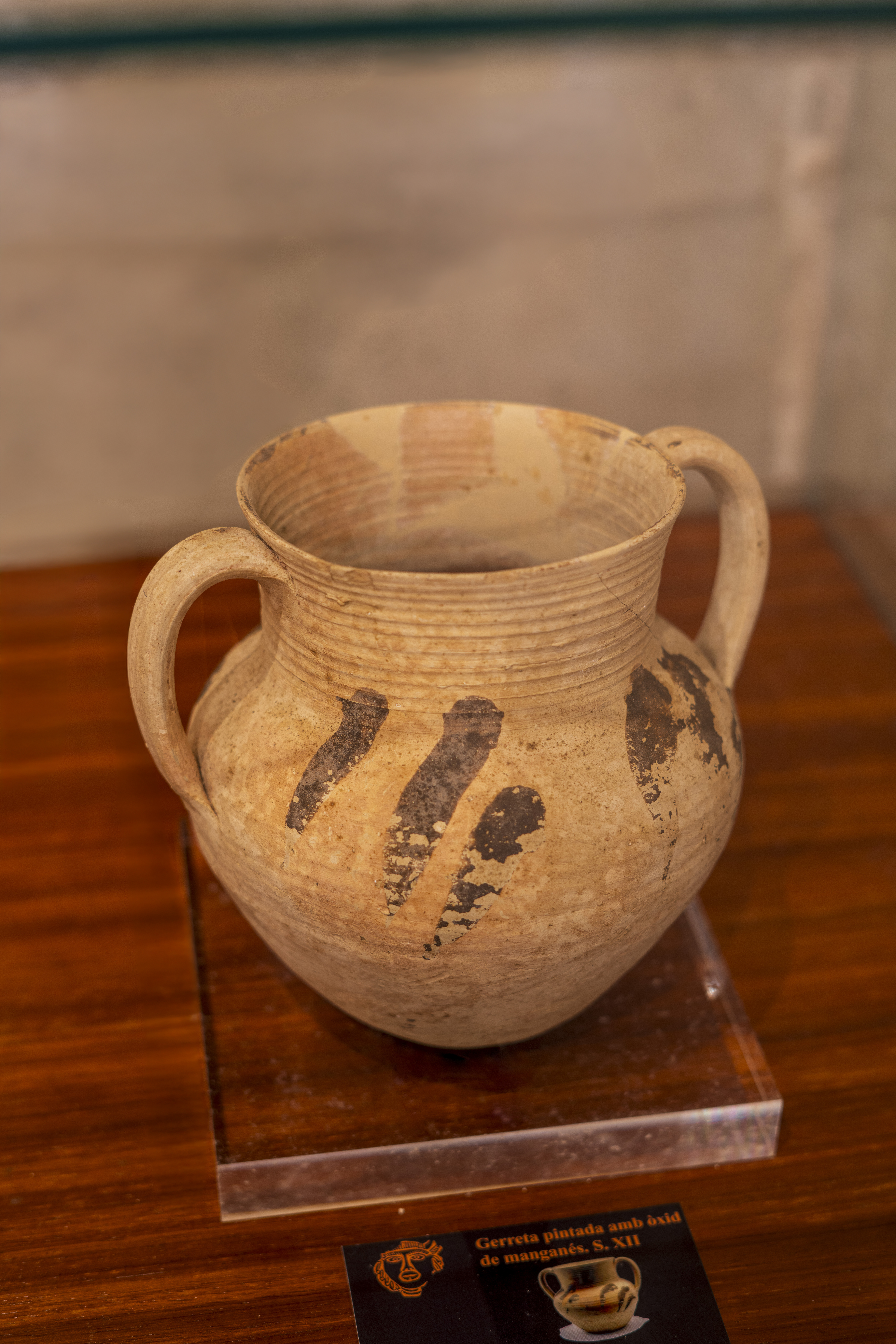 Descripció: Vaixella de taula de terrissa bescuitada d’ús individual, pròpia del període califal. Presenta una decoració amb traços en òxid de manganès.