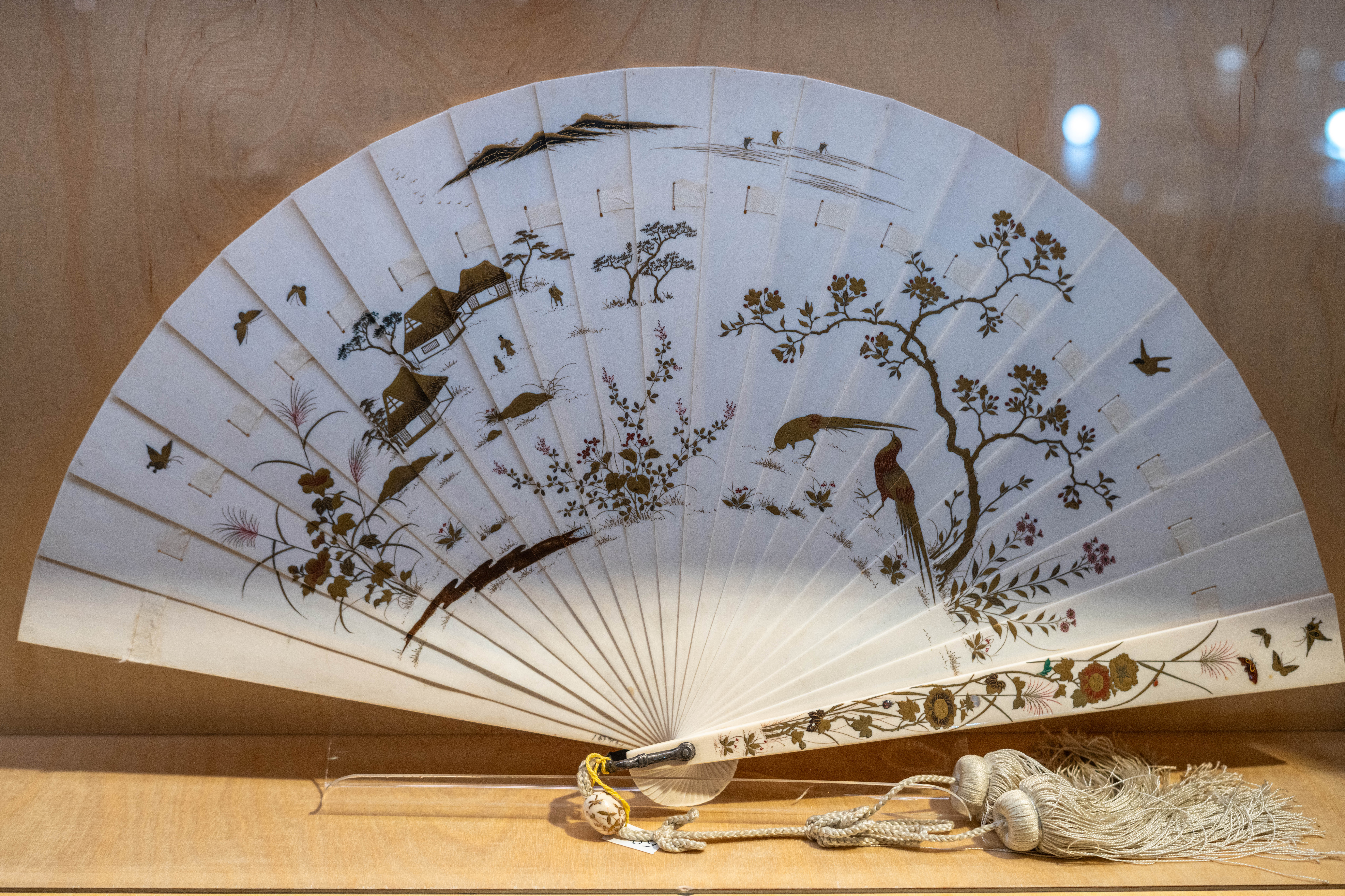 Varillatge: (20+2) Ivori asiàtic, incrustació Shibayama en capçalera. Lacatge Hiramakie i Takamakie. Decoració per transparència en cara posterior. Maquejat japonès
