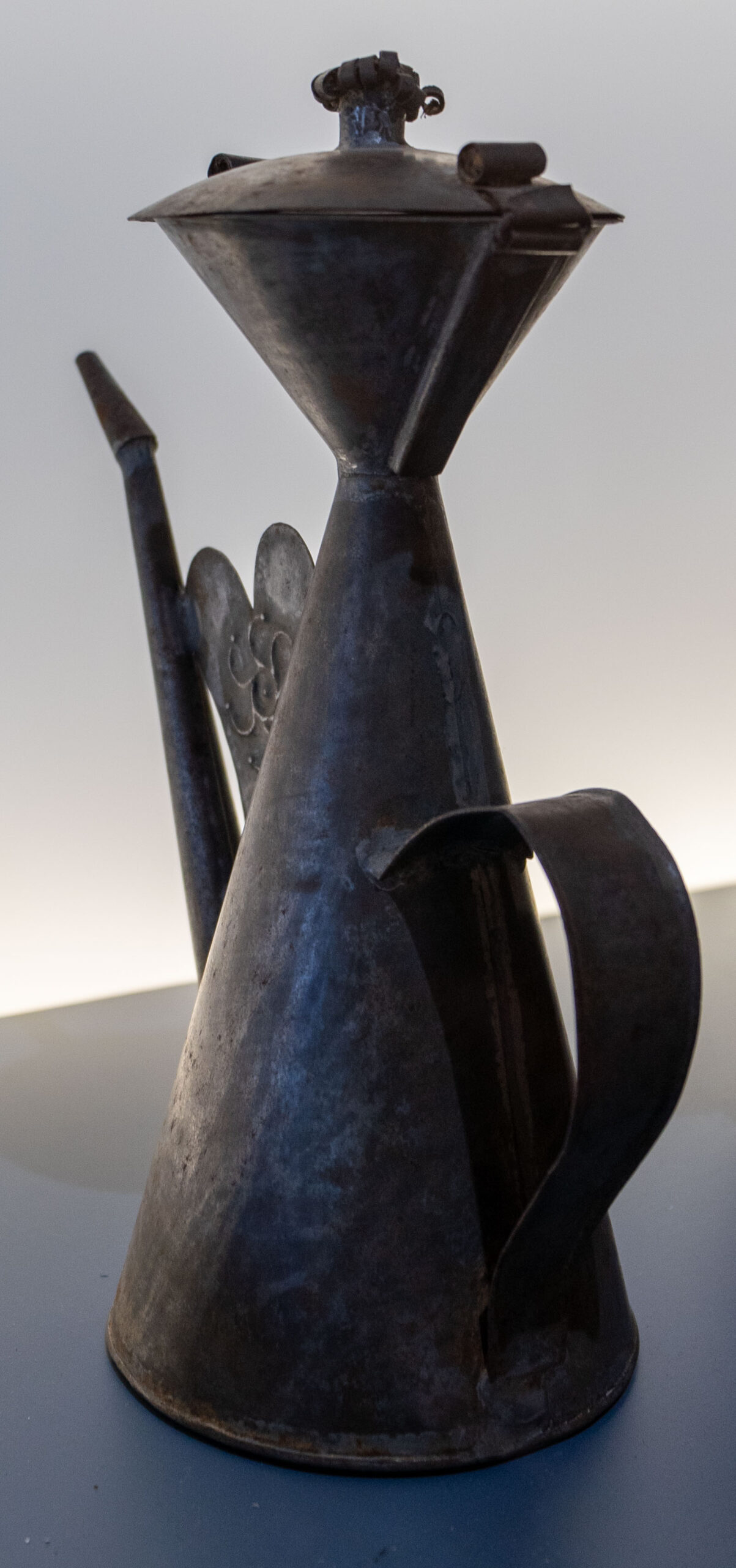 Descripció: Recipient de vidre, de terrissa o de metall, com este, que serveix per a contenir i abocar l’oli