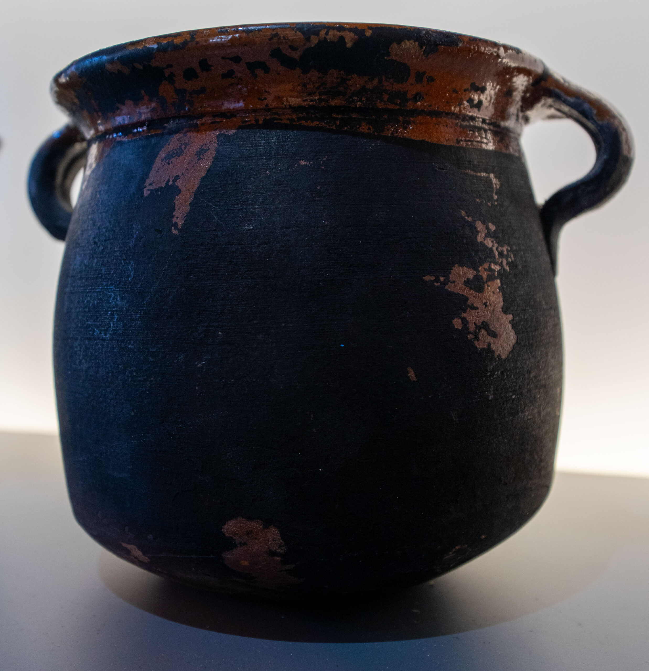 Descripció: Recipient de forma globular, base convexa i dues anses, amb l’interior envernissat. S’utilitzava per a la cocció d’aliments