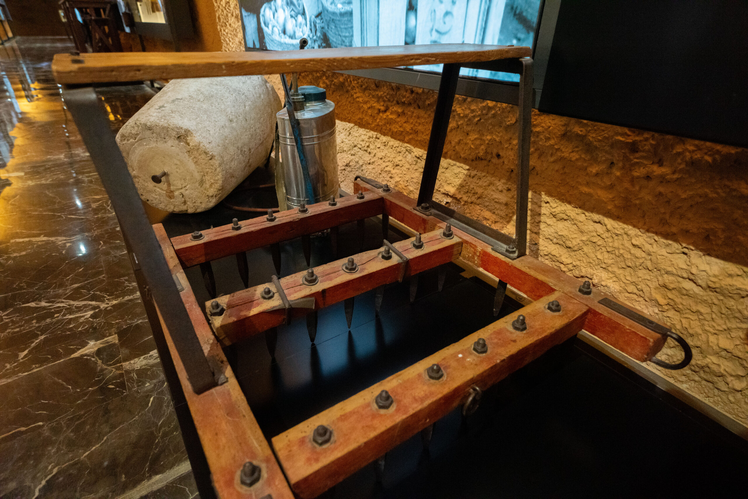 Descripció: S’utilitzava per a triturar la palla. Normalment troncocònic, es conforma de fusta o de pedra, podent ser llisos com este o estriat