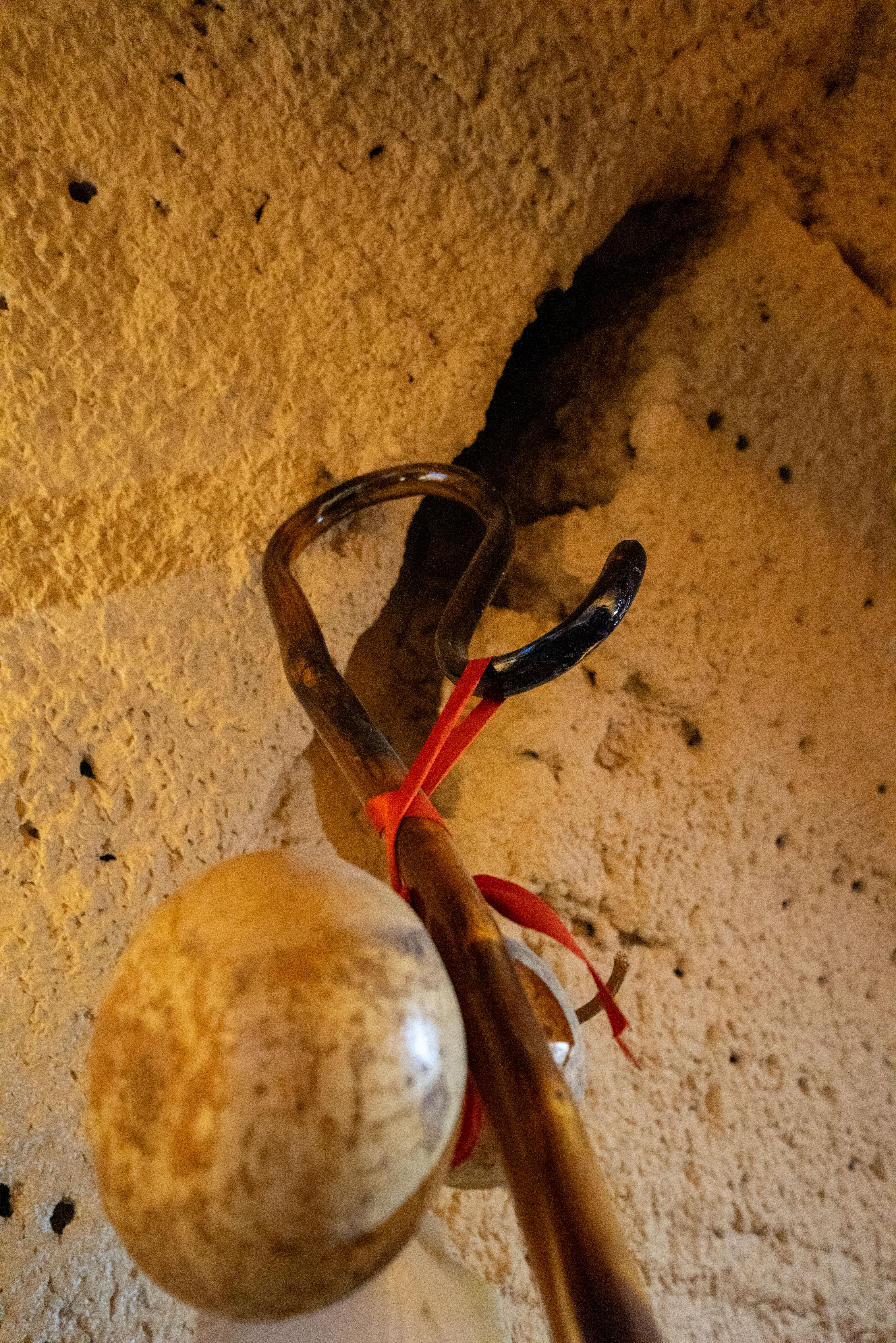 Descripció: Indumentària completa dels portadors de Sant Roc, que recorda a la roba del pelegrí