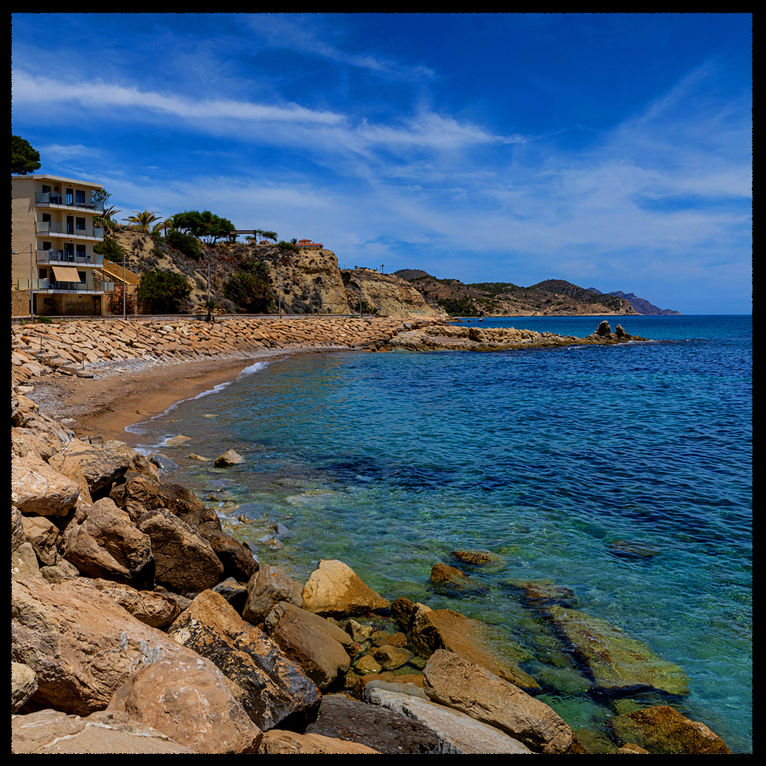 Xicoteta cala de còdols fins en una zona molt tranquil·la. Accés des del passeig platja dels Estudiants, que voreja les tres cales.