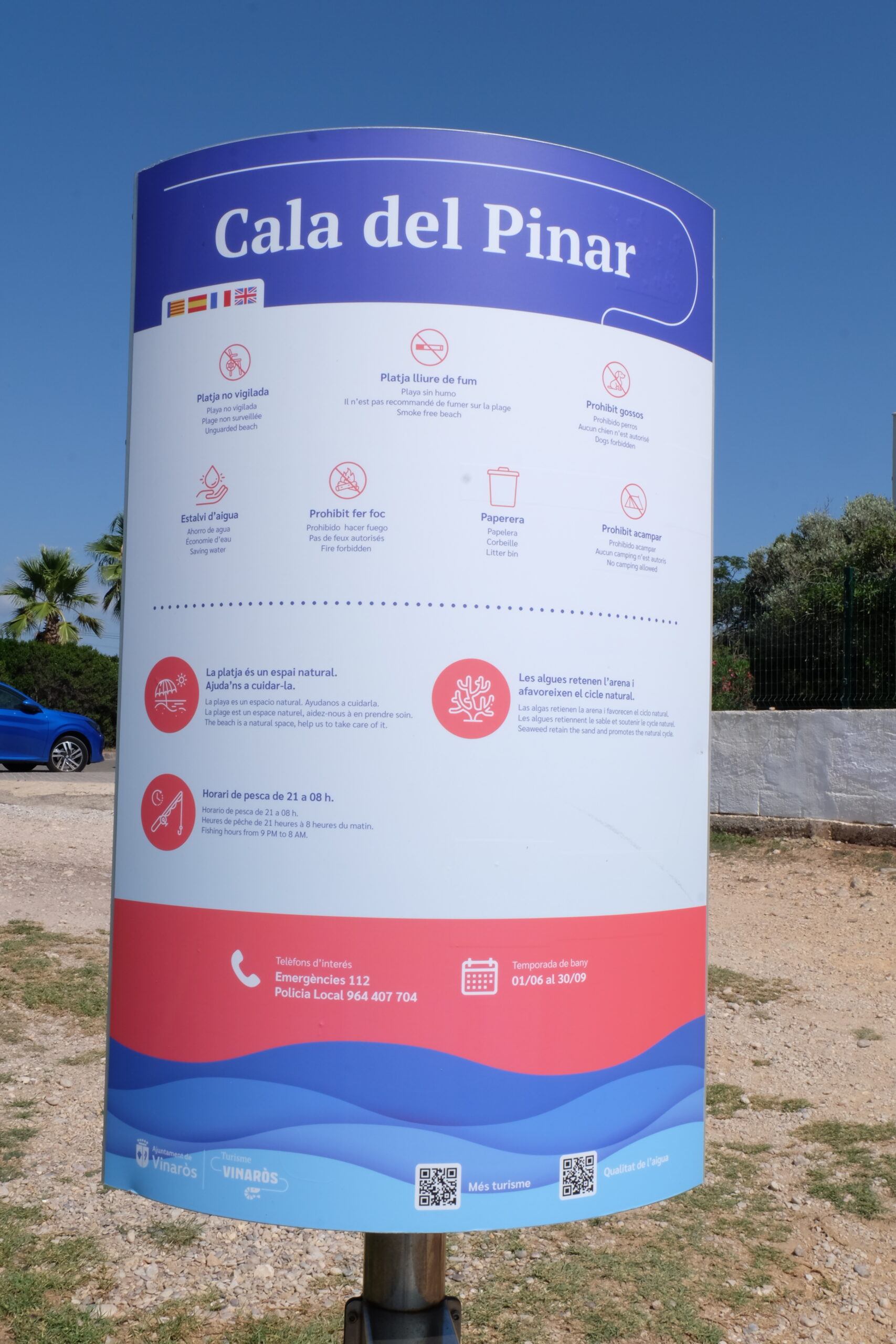 Cala del Pinar Menuda, d’arena i còdols · Dutxa en temporada de bany 🚿Entre pins mediterranis, amb aigües netes i fons marí ric.Connecta amb la natura i gaudeix del busseig.