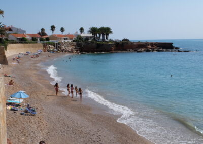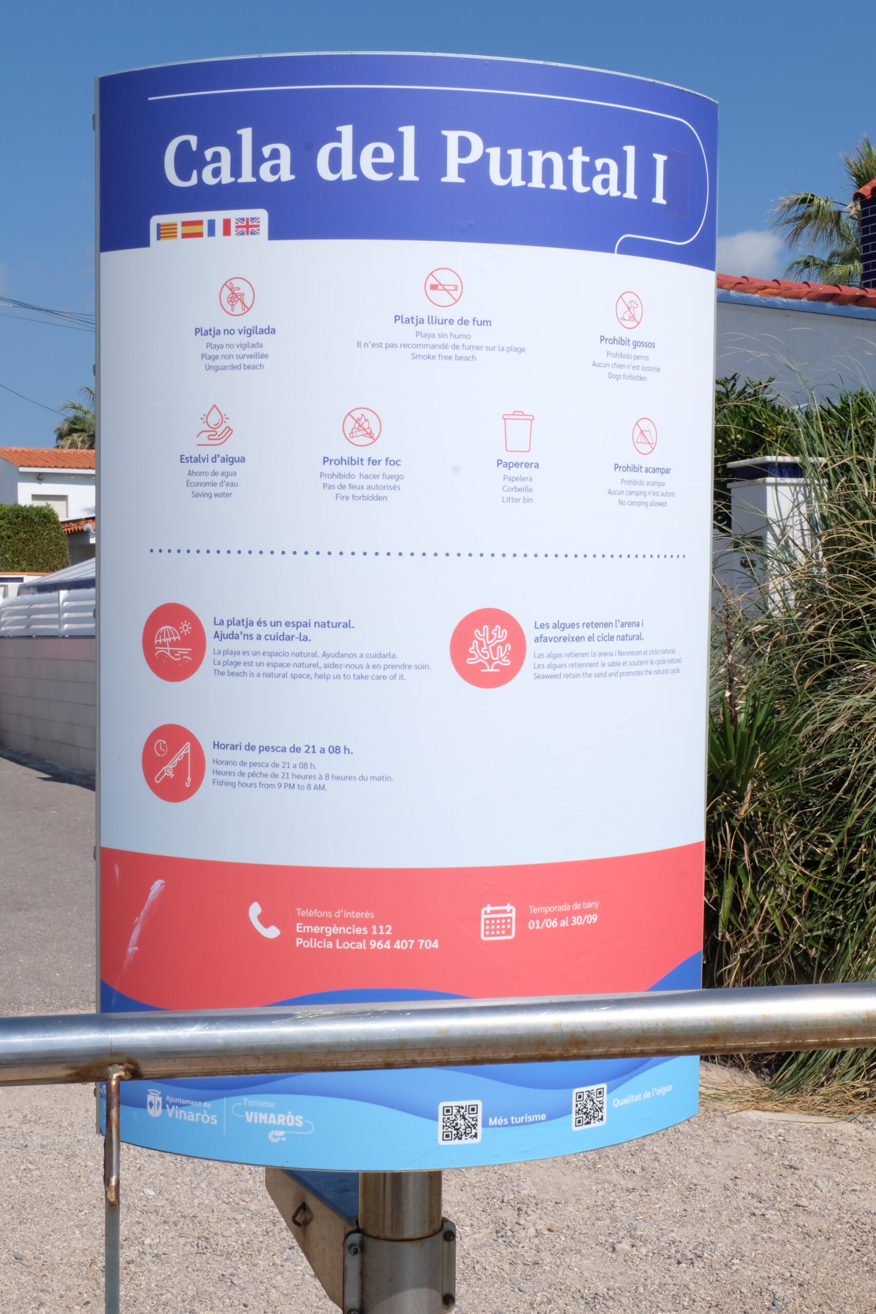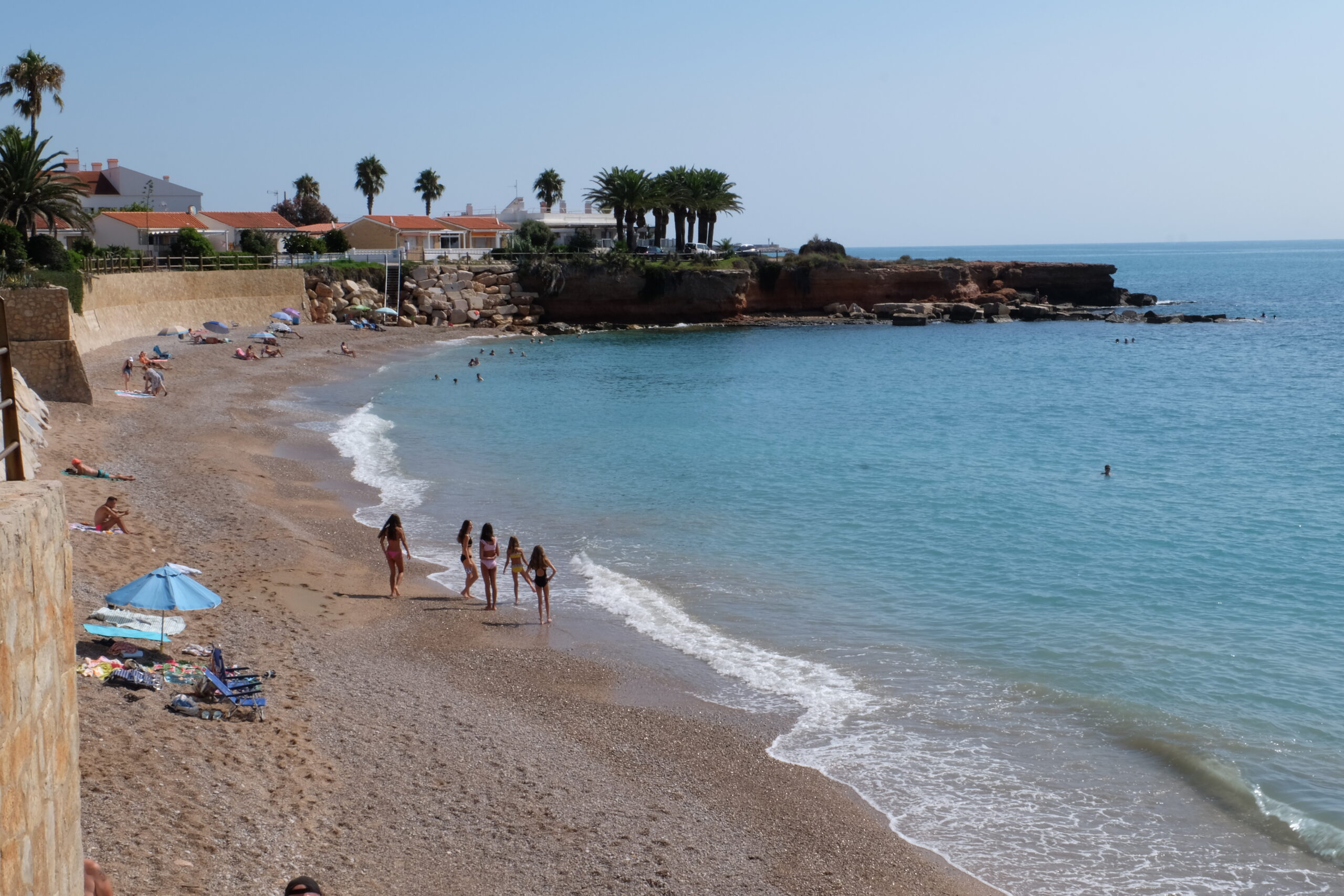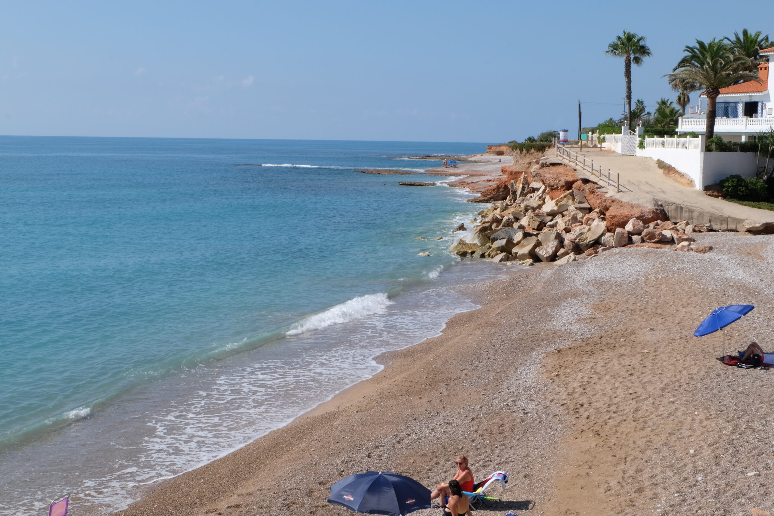 Cala del Puntal Gran, de còdols i pedres · Dutxa en temporada 🚿Descobreix una cala emblemàtica envoltada de palmeres.