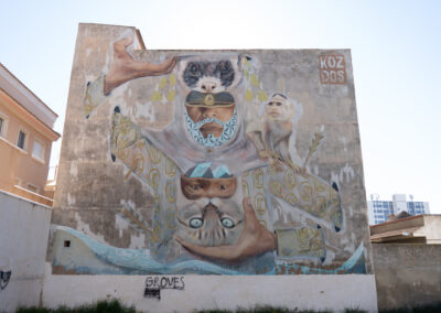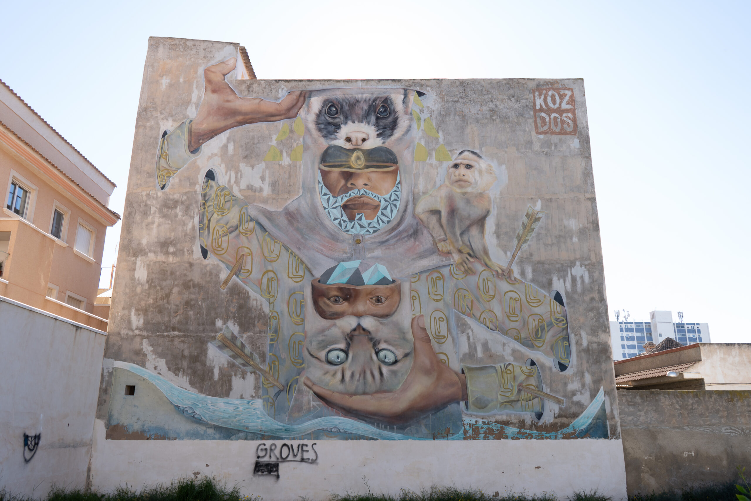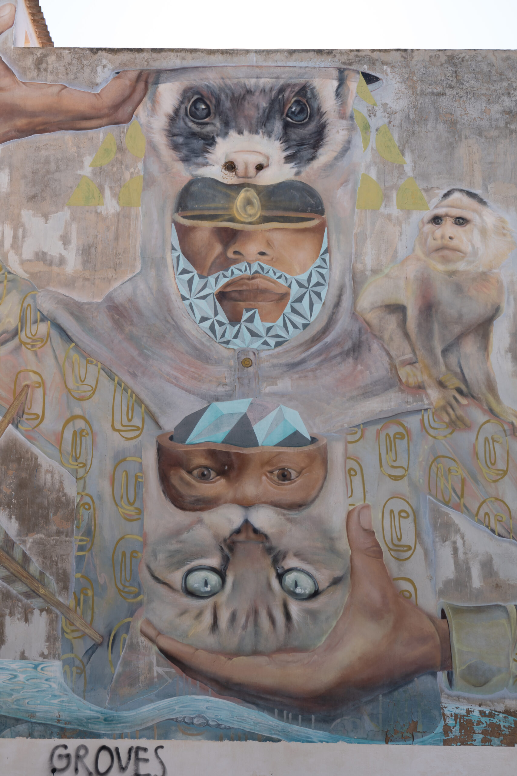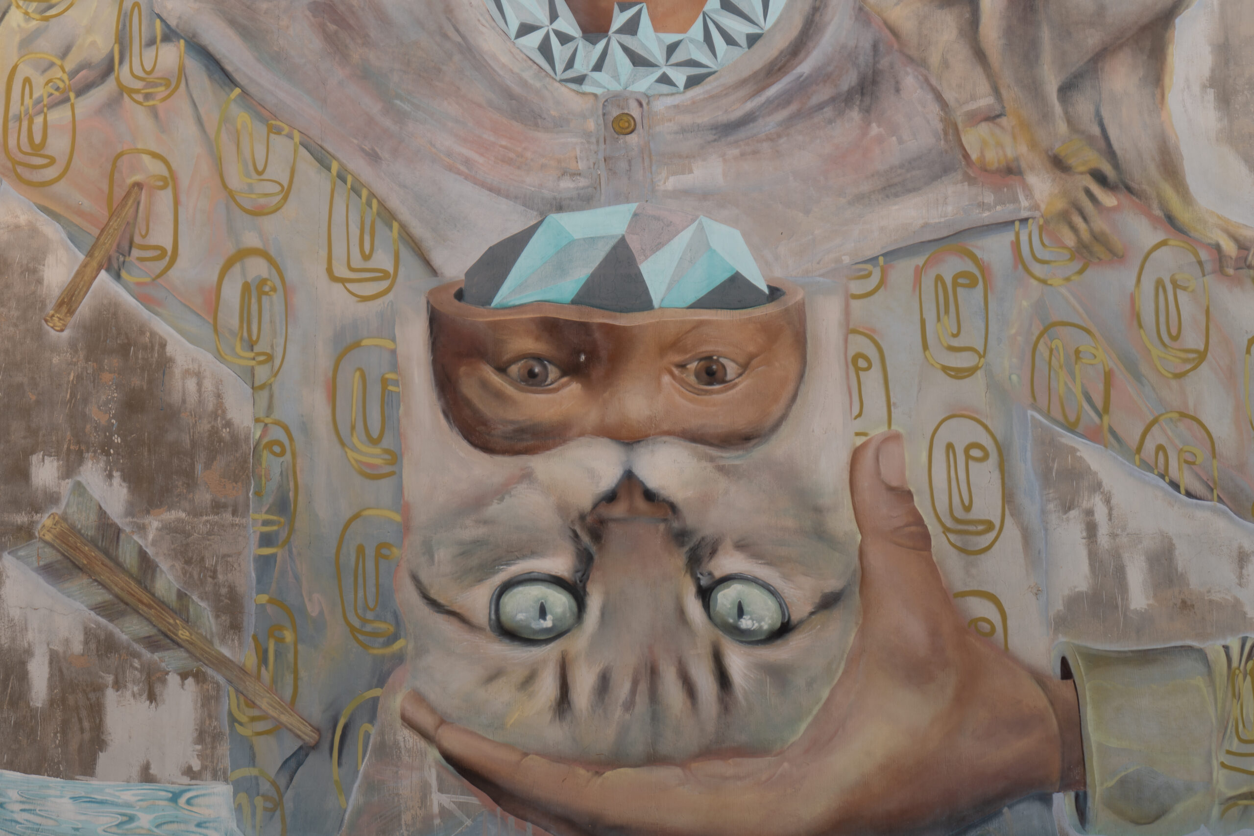 Everything interacts with the architecture of the building, as if the mural had been born with it.