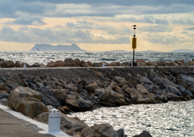 The view combines the dynamism of marine and urban life with the serenity of the Mediterranean. In the background, the mountain range’s silhouette stands out, creating a perfect contrast between sea and mountain. It is an ideal spot to enjoy a sunset, capture spectacular photographs, or simply relax while appreciating the harbor activity and the movement of the vessels.