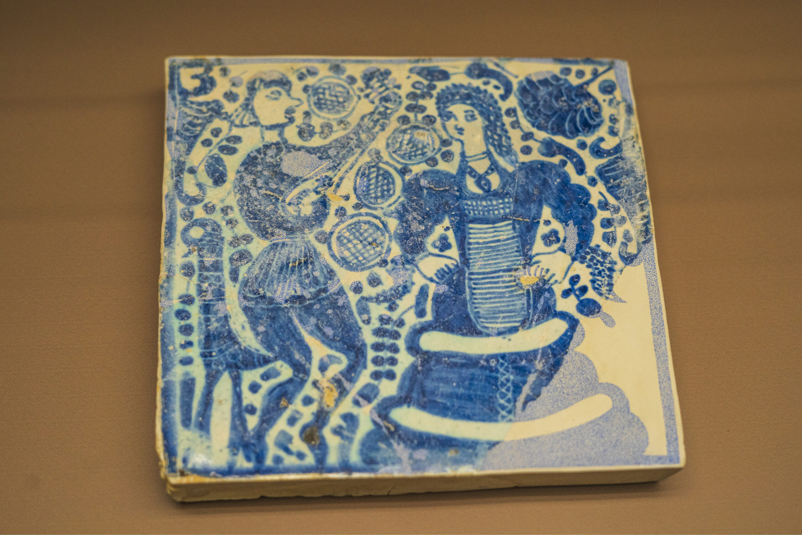 At the time when this tile was made in Manises, the troubadour movement had faded, but its influence was still recognizable in Valencian poets of the first half of the 15th century such as Jordi de Sant Jordi and Ausiàs March. Likewise, the existence of this presentation of the troubadour and his lady on the ceramic tile indicates that between 1460 and 1470 this image, symbol of courtly love, was still valid, although only as an allegory.
