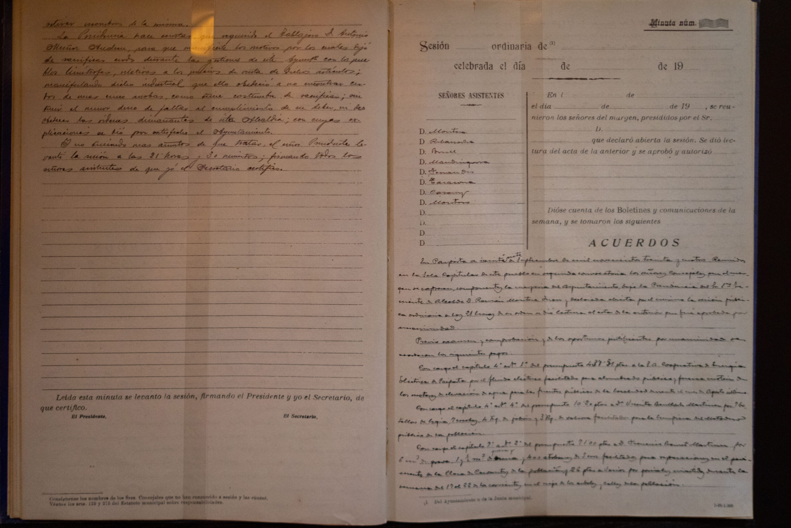Description: A minutes book from the Paiporta Town Hall, which records the purchase of tiles from Mr. Francisco Bauset, a tile manufacturer
