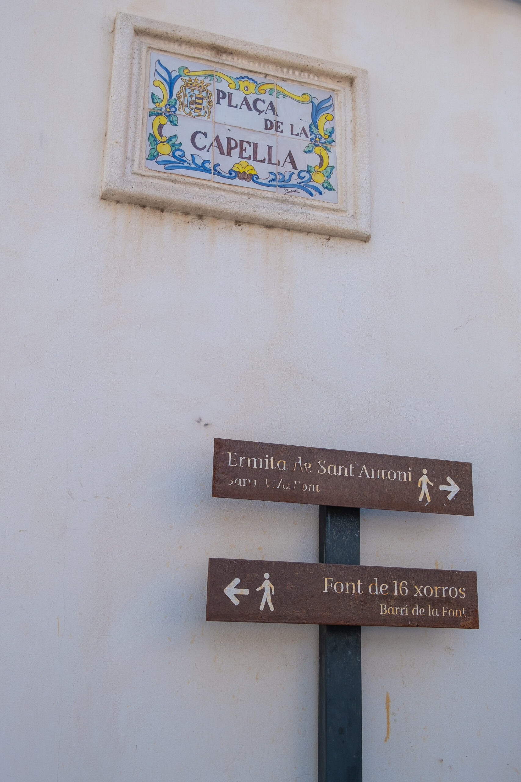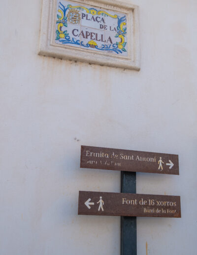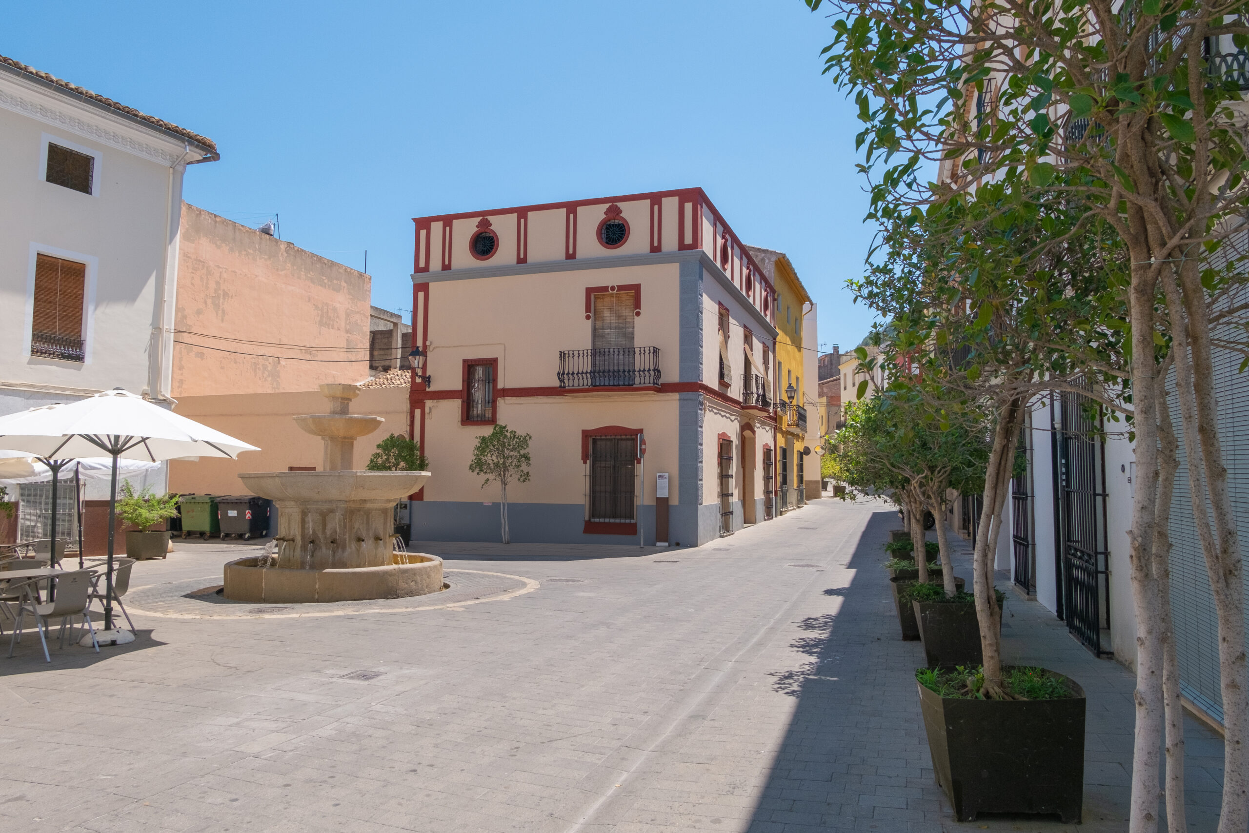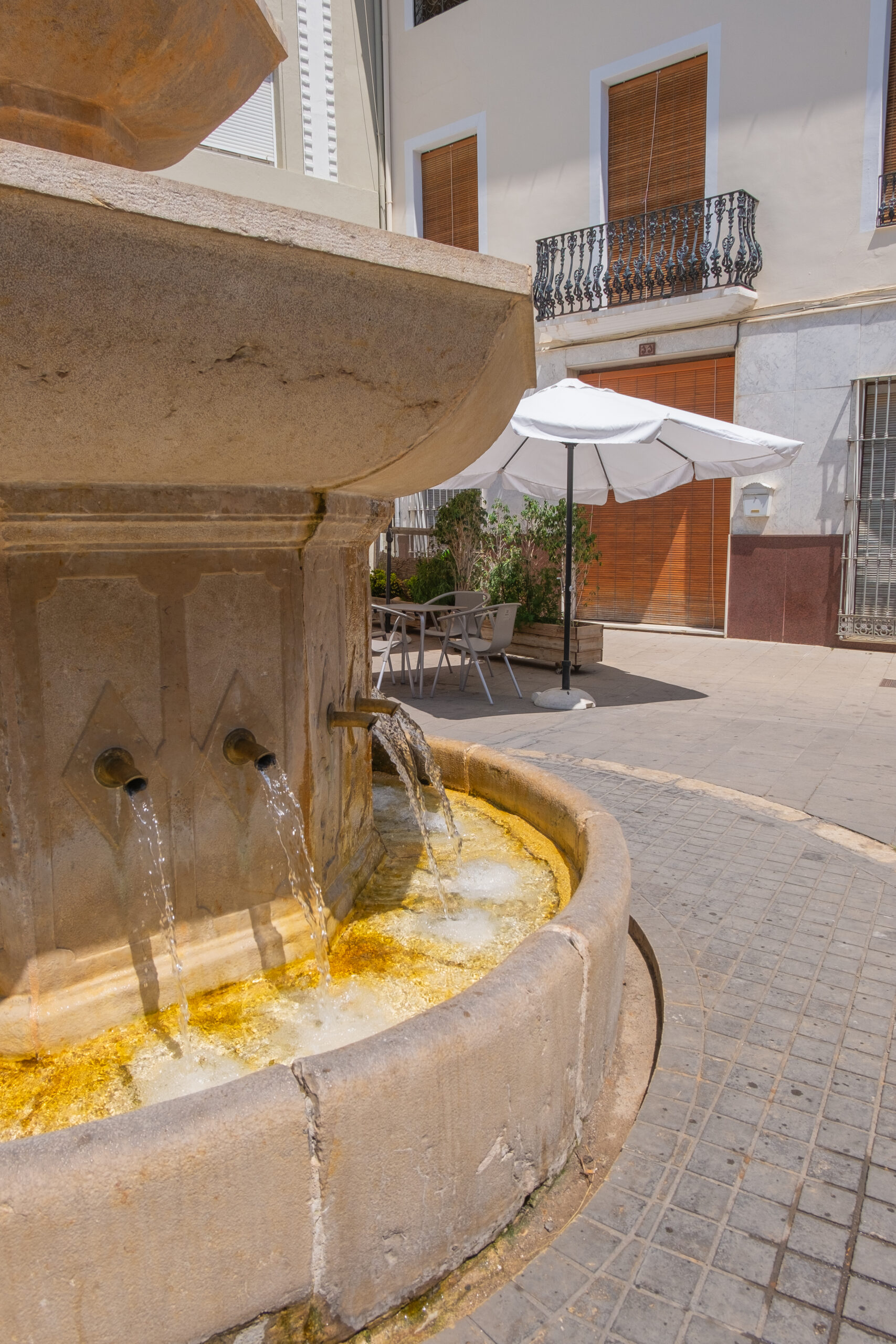 The fountain is closely linked to its patron saint, the Virgen de la Fuente. According to tradition, in 1708 a woodcutter and fisherman named Senent Pla found a small wooden box floating downstream in the town’s river, the river Serpis. Inside the box was a carved wooden figure of a virgin. This image was used to take to the sick, and with her prayers, cures were produced. In 1712, a severe drought hit the town, endangering crops and livestock. At that time, the town’s parish priest decided to place the image of the Virgin in the fountain of the spring, and shortly afterwards the water began to flow again.