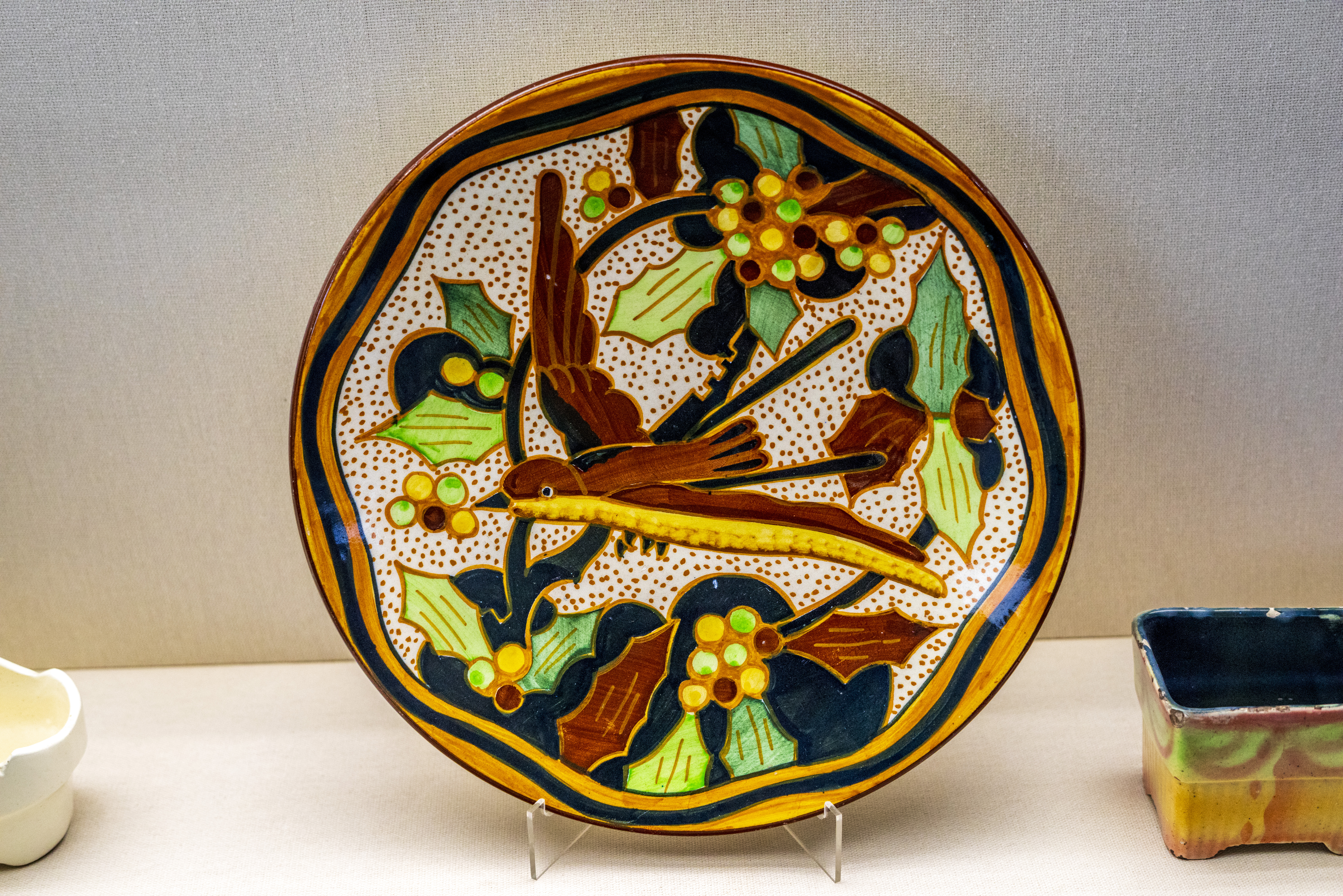 Pieza fabricada en Manises durante el siglo XX. Durante este siglo, la diversidad de tipologías de los objetos fabricados es abundante así como los ornamentos decorativos. Se elaboraban a molde con pasta blanca, que una vez cocida se decora generalmente con policromía. Además, encontramos diferentes técnicas para aplicar color a las piezas (pincel y mano alzada, trepa y aerógrafo) que se combinan para conseguir ricas decoraciones. Finalmente, las piezas reciben un vidriado transparente y se cuecen de nuevo.