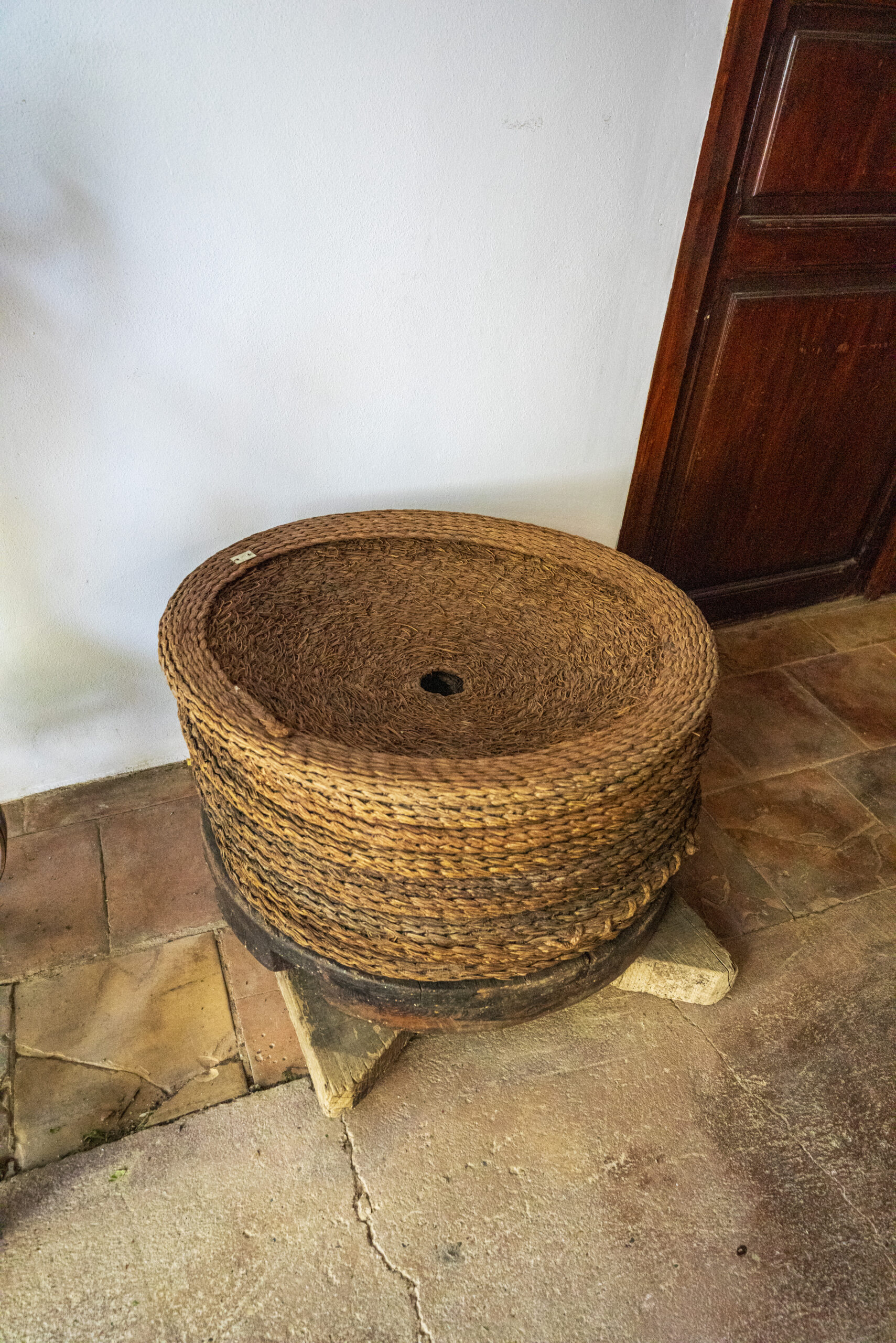 Recipiente plano hecho de esparto y que sirve por a contener higos, pasas, pescado, etc…, también se usa para exprimir la pasta de olivas en la prensa de una almazara. En este caso, el cofín hacía la función de filtro, al prensar la pasta de la oliva, el aceite escurría por los agujeros y los trozos de hueso permanecían lo el cofín.