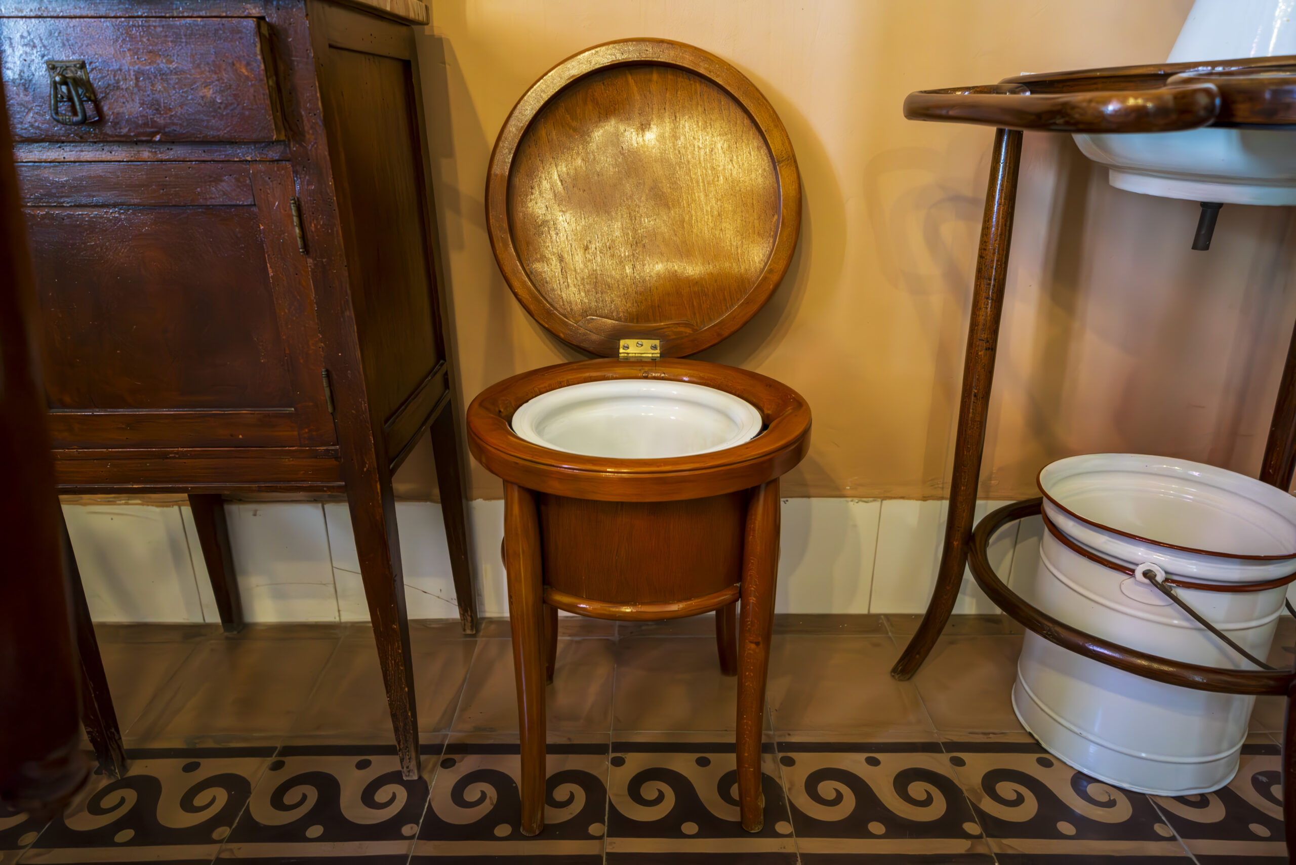 Orinal o bacín incrustado en un banquillo de madera con tapadera. Era habitual disponer de un bacín en el dormitorio para no salir al patio por la noche a hacer las necesidades. Muy a menudo, las familias tenían un orinal debajo de la cama. Este, hacía las funciones de la letrina, al estar elevado era más cómodo y la tapadera aminoraba el mal olor. Para enmascarar los efluvios, en algunas casas se metía una bolsita de hierbas a los pies de la cama.