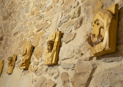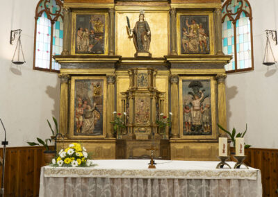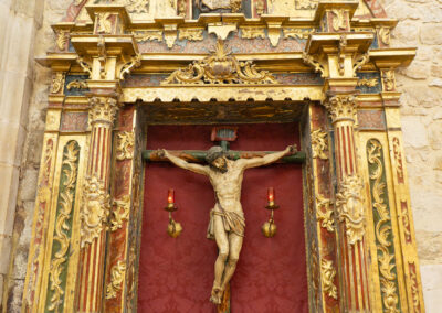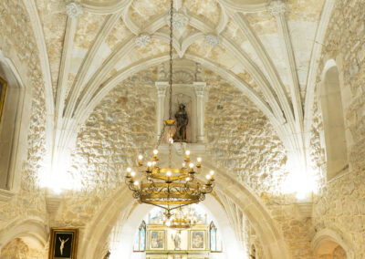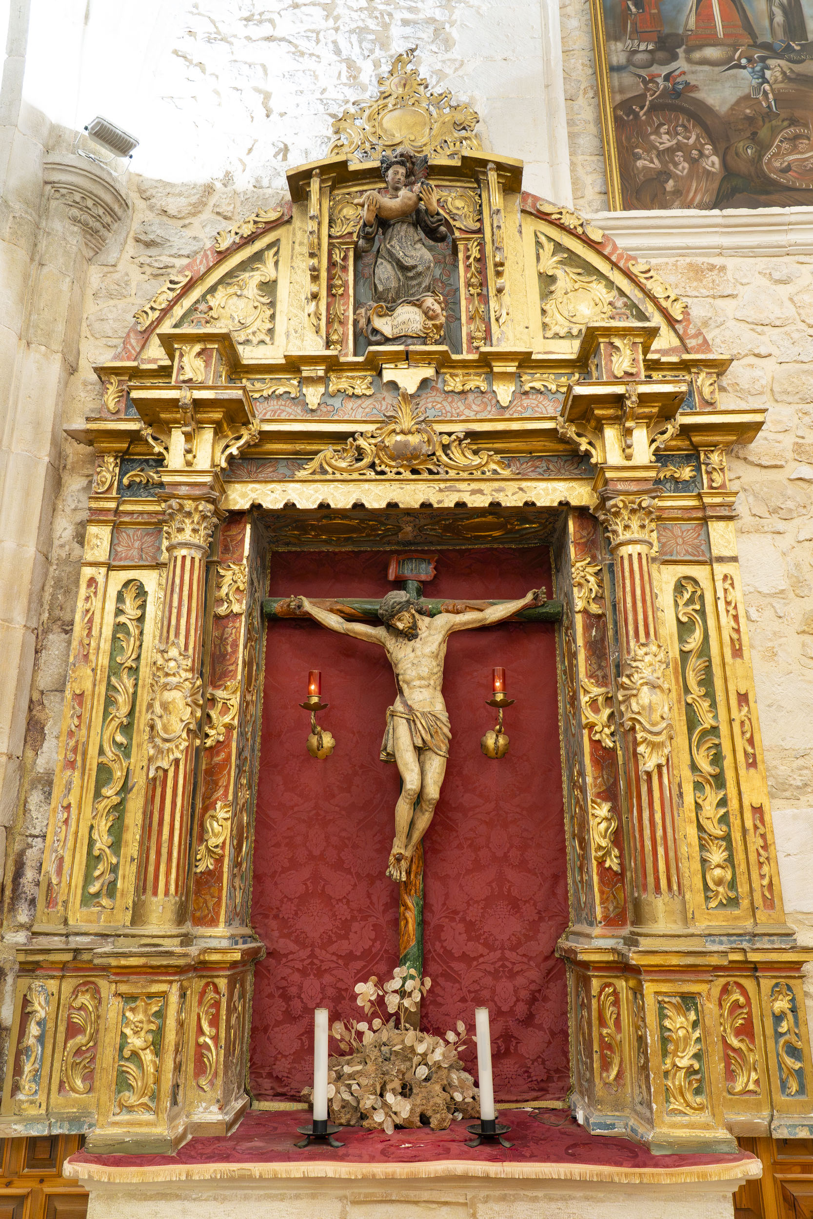 El templo cuenta con una única nave cubierta por intrincadas bóvedas de crucería. En su interior destacan varios elementos artísticos de gran valor, como una pintura-exvoto del siglo XVIII, un crucifijo de finales del siglo XVI y un impresionante retablo en el presbiterio, que añade solemnidad al conjunto arquitectónico.