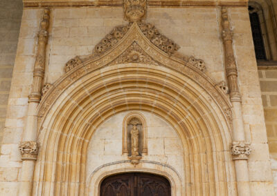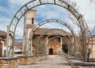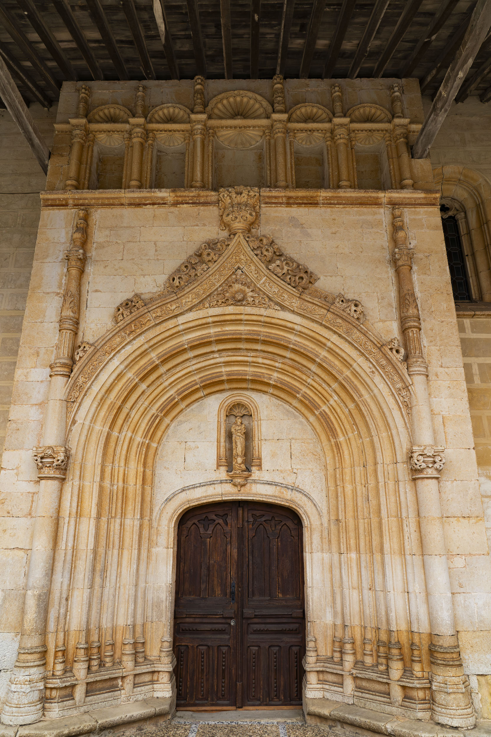 La iglesia de Santa Águeda, situada en el municipio de Castrejón de la Peña, es un magnífico ejemplo de la transición entre el gótico y el renacimiento, con elementos que realzan su elegancia. Su portada, de gran belleza, se abre en un arco escarzado adornado con delicadas arquivoltas semicirculares, culminando en un arco conopial ricamente ornamentado con pequeñas figuras y hojas de cardo rizadas. Para resguardarla de las inclemencias del tiempo, se añadió un estilizado pórtico sostenido por dos esbeltas columnas.