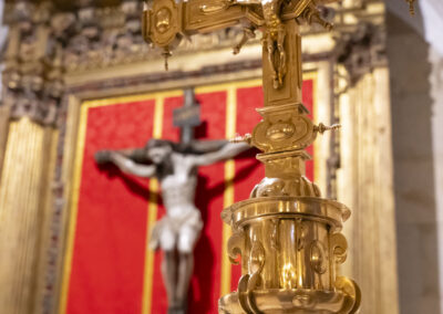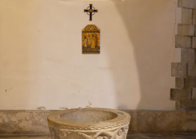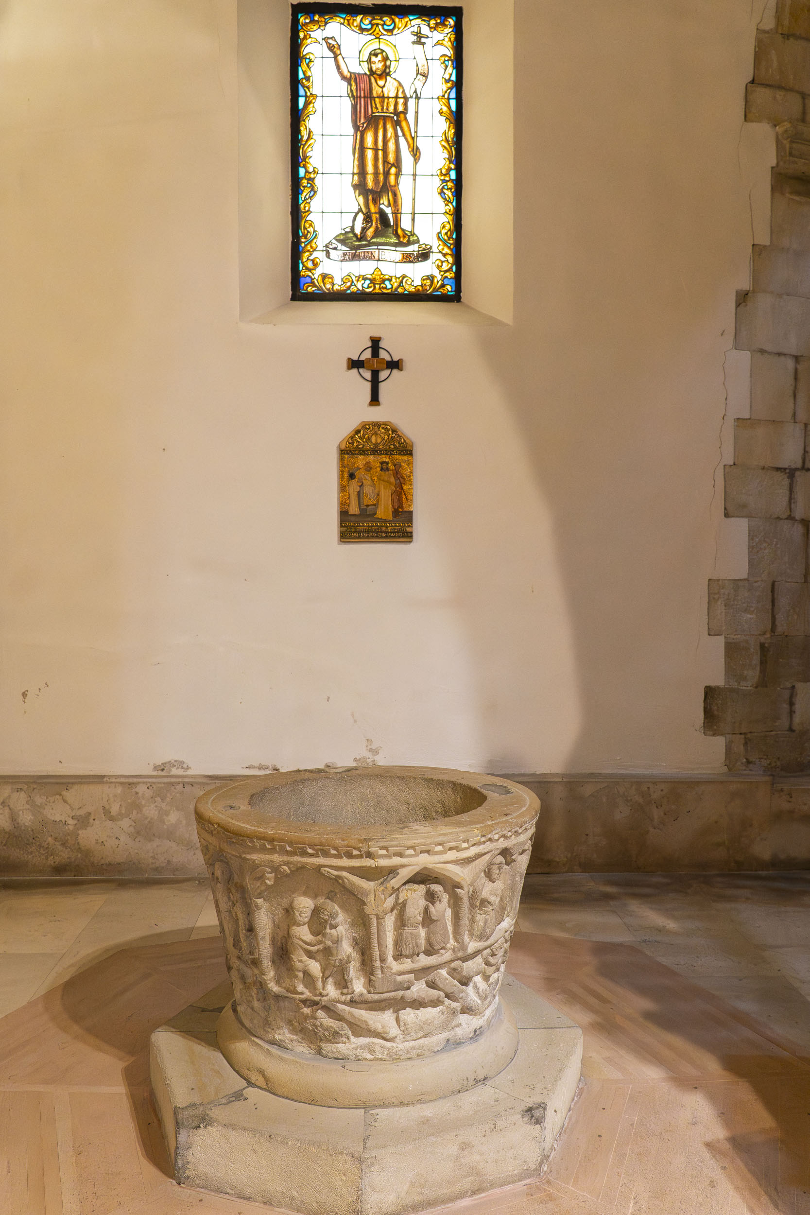 Templo del siglo XVI que se levanta sobre otro de época medieval. Y es, precisamente, de tiempo muy lejana la pila bautismal que se conserva en su interior, una joya prerrománica con una enigmática historia narrada en piedra que, hasta ahora, ha desafiado a quienes han intentado desentrañar los misterios de su significado. Aunque está clara la doble significación de los elementos esculpidos en esta pila, con una parte superior dedicada a los cielos y una inferior que mira al inframundo, la intención del escultor original a la hora de elegir cada uno de los elementos que componen esta pieza única sigue siendo algo desconocido. La torre de la iglesia, del siglo XVIII, da buen porte a un templo que, en su interior, ha visto toda clase de reformas a lo largo de los años, como puede verse en los tirantes metálicos que refuerzan la estructura y que fueron colocados no hace mucho tiempo. En el interior del templo habitan varias joyas, además de la pila prerrománica mencionada, como la talla de San Antonio de Padua, patrón de Guardo. El Cristo de la Agonía, la reliquia de Santa Columba, que tuvo ermita propia en la localidad antiguamente y otras tallas interesantes, acompañan al visitante que podrá descubrir algunos rincones tan misteriosos como la pila bautismal a poco que mire con detalle. Uno de esos misterios es la presencia de una lápida que tiene tallados diversos elementos, como una cruz-espada, que bien pudo pertenecer a un caballero templario. La iglesia cuenta con una gran capilla aneja, con cúpula dotada de linterna, que fue mandada construir a mediados del siglo XVIII por el guardense arzobispo de Burgos, obispo de Barcelona y Sigüenza, así como vicario general castrense y gobernador del Consejo de Castilla, Don Francisco Díaz-Santos Bullón, cuyo retrato de época también se puede contemplar es esta iglesia.