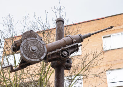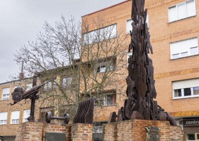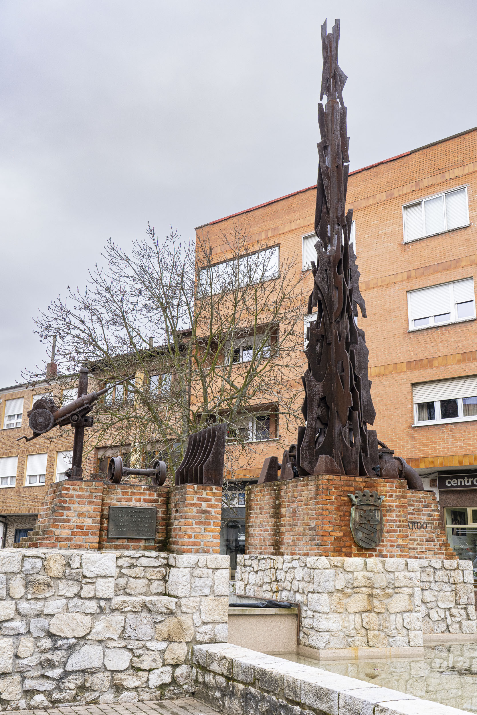 Entrando en Guardo desde la carretera hacia Palencia llama la atención un gran conjunto escultórico que no se parece nada convencional. Se trata de una mezcla de gran escultura de hierro con elementos de piedra que está presidida por una espiga gigante de hierro, de ocho metros de altura, que lleva elevada ahí desde 1976. En pleno auge de la industria y la minería guardenses, se creó para homenajear a los diversos sectores económicos que dieron vida a Guardo. La espiga por los agricultores, elementos en piedra por los alfareros y herramientas propias de los mineros y de la industria química, crean un conjunto muy especial que no sólo está ahí para ser contemplado, sino que cada uno de esos elementos necesita ser leído en clave histórica, pues nada se dejó al azar en su construcción.