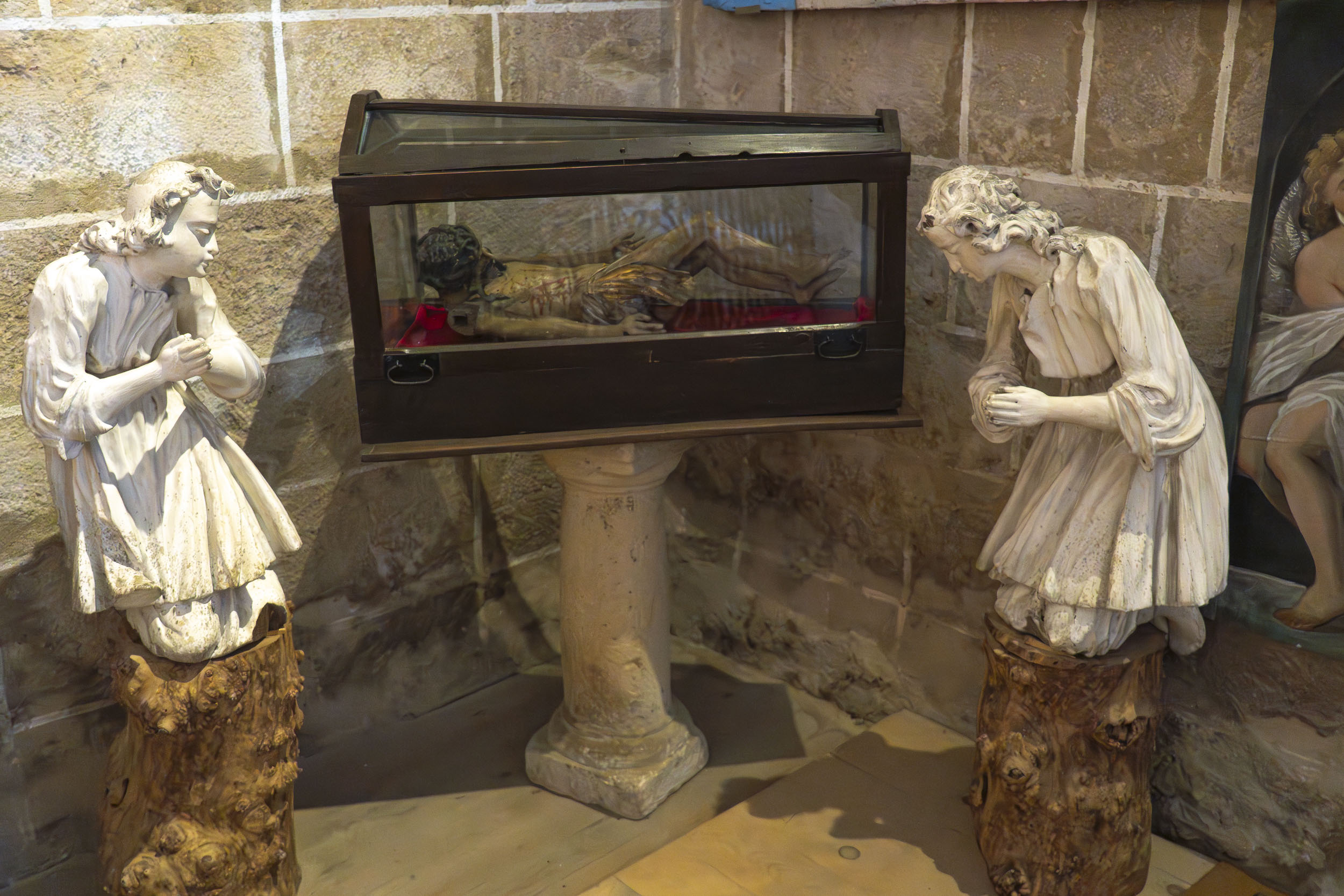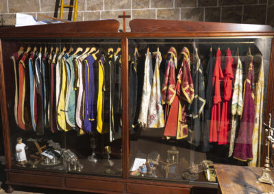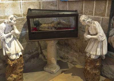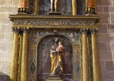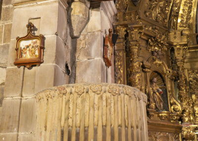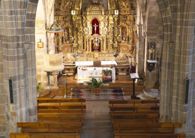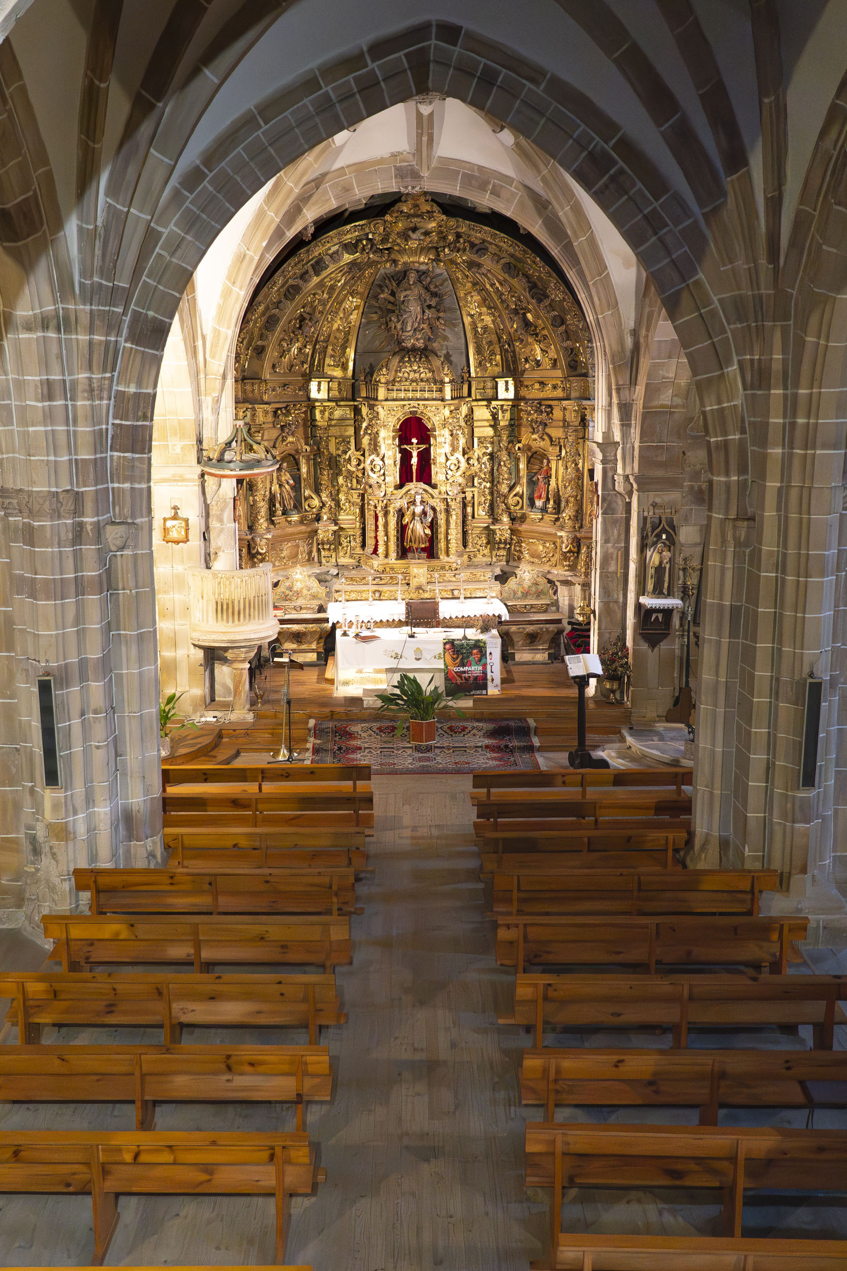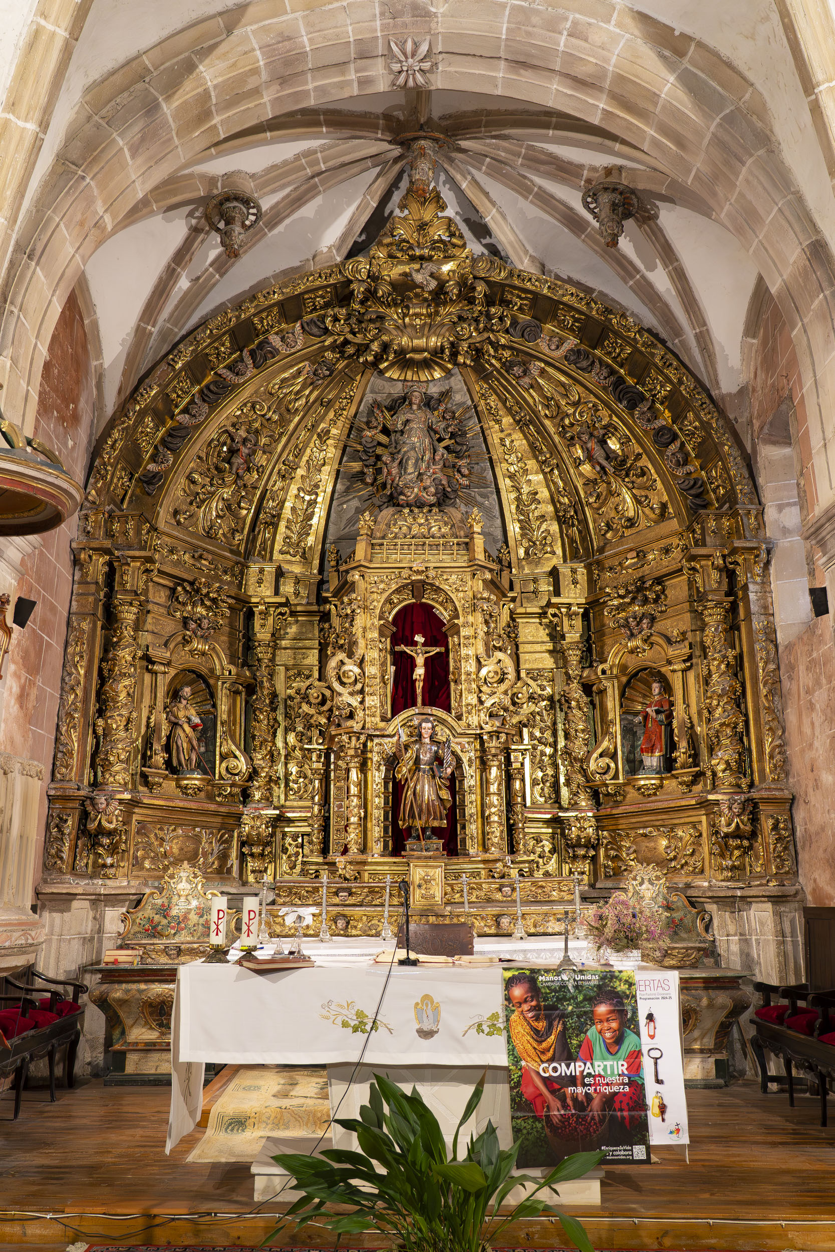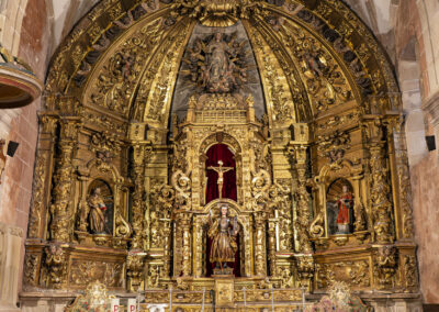 En su interior hay varios retablos de los siglos XVII y XVIII, una talla de Cristo Crucificado del siglo XIV y una Cruz Procesional del siglo XVII. Esta cruz latina de brazos rectos es obra del platero Antonio Gil y formó parte de la Exposición “Las Edades del Hombre” de Palencia (1999).