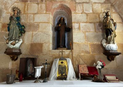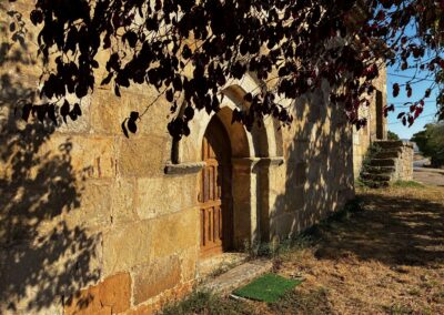 Al igual que el núcleo que lo ampara, el templo de San Román es de pequeñas dimensiones, muy sencillo –una única nave rectangular y ábside cuadrado con arco toral apuntado entre ambos– y bastante transformado. En este sentido cabe destacar la zona occidental en donde modernamente se han levantado varios tabiques de ladrillo que han dado lugar a pequeños espacios habilitados como sacristía, baptisterio o cuarto trastero. La omnipresente espadaña se eleva sobre el ábside, con un acceso al campanario formado por un cuerpo adosado a la iglesia en el lado este. Exteriormente el conjunto ofrece gran disparidad en cuanto a los materiales que lo constituyen. En la fachada sur los paramentos se construyeron con sillería arenisca bien escuadrada, la fachada oeste sólo presenta sillería en su parte inferior ya que la zona superior muestra una mampostería de apariencia más moderna, aunque con buenos sillares angulares. La fachada norte permanece totalmente revocada por hormigón blanqueado que nos impide apreciar el aparejo, poniéndose de manifiesto la existencia de ladrillos modernos en la base y la pervivencia de sillares angulares y canecillos. Otro testimonio de intervenciones recientes es el hormigón utilizado en las juntas de los sillares. Interiormente aparece revocado casi por completo a excepción del ábside, liberado del revoco en época reciente, mientras que el pavimento es moderno, de losetas de terrazo. A simple vista observamos cómo el interior de la nave ha sufrido diversas transformaciones: tabiques de ladrillo que además de sustentar el típico coro alto de madera ubicado a los pies crean una serie de espacios con distintas funciones, abertura –a modo de hornacina o arcosolio– en el muro norte de la misma, abovedamiento a base de forjado de madera con cubierta a doble vertiente, ventanales, etc. La única portada de acceso, de pequeñas dimensiones, la localizamos en el muro meridional y se compone de un arco doblado y apuntado con chambrana e impostas de nacela. Separando la nave de la cabecera aparece el arco triunfal apuntado, de sencilla factura y chambrana nacelada, que descansa sobre pilastras con cimacio también de nacela.