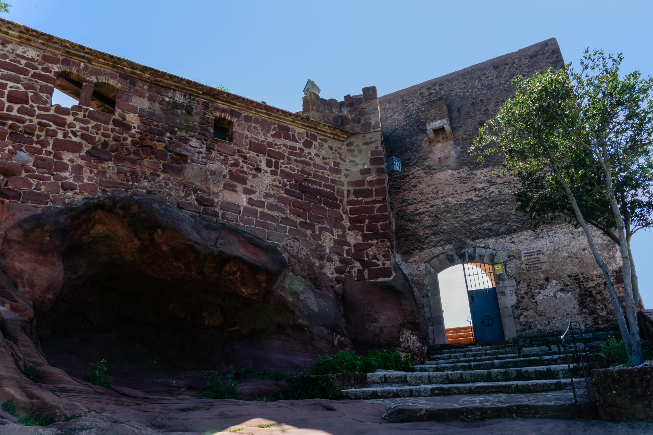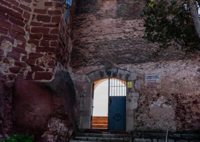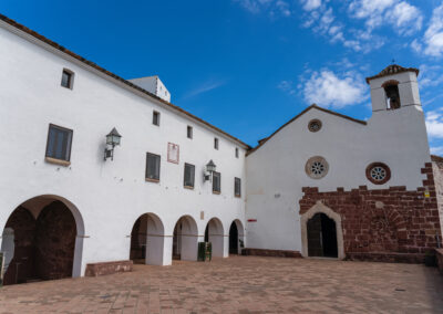 Il est intégré à la montagne rouge de la Roca, qui se distingue par les formes capricieuses sculptées par l’érosion dans ses falaises. On y vénère une vierge noire, la Mare de Déu de la Roca, patronne de Mont-roig del Camp. Ses origines se perdent dans la légende, qui situe la découverte de l’image de la Vierge en 1153 par un berger.