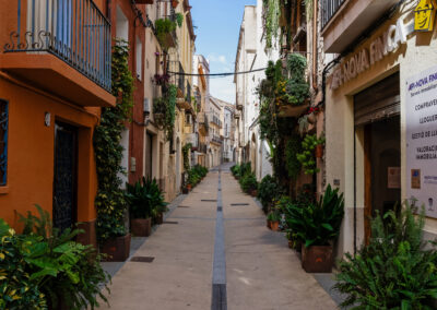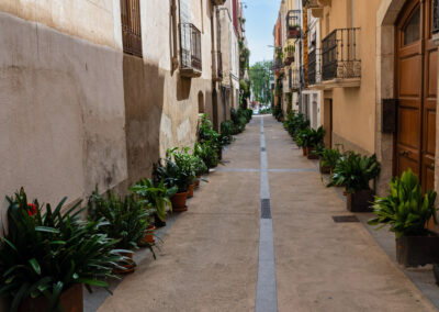 Rue Francesc Riba i Mestre C’est l’une des plus jolies rues de Mont-roig del Camp. Ses habitants la décorent avec de belles plantes et fleurs qu’ils entretiennent quotidiennement, et la parent même lors de fêtes spéciales comme Noël.
