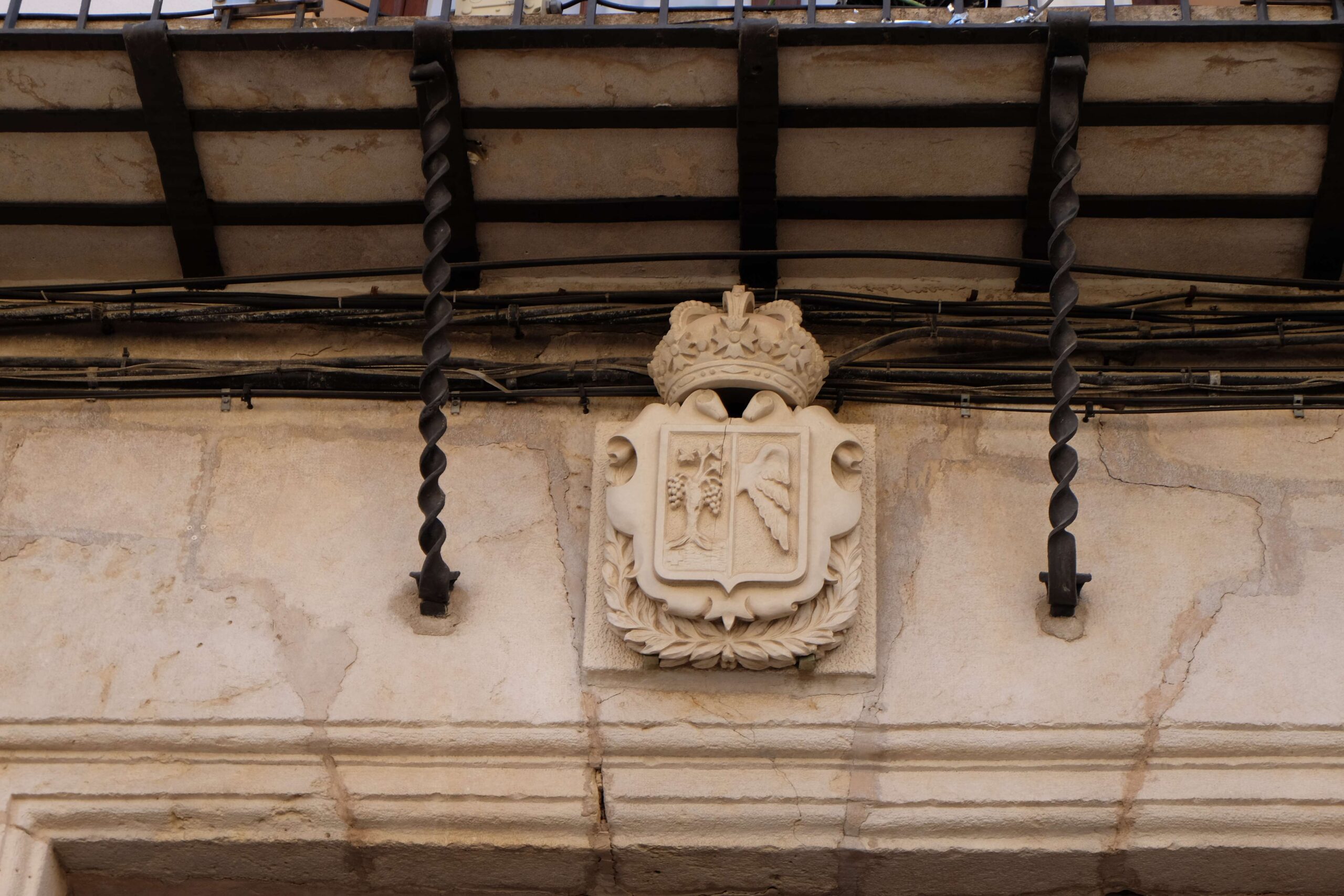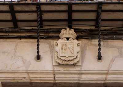 Sur la façade, on trouve deux blasons : l’un au niveau de la porte et l’autre au-dessus du balcon. Ce dernier date de 1785.
